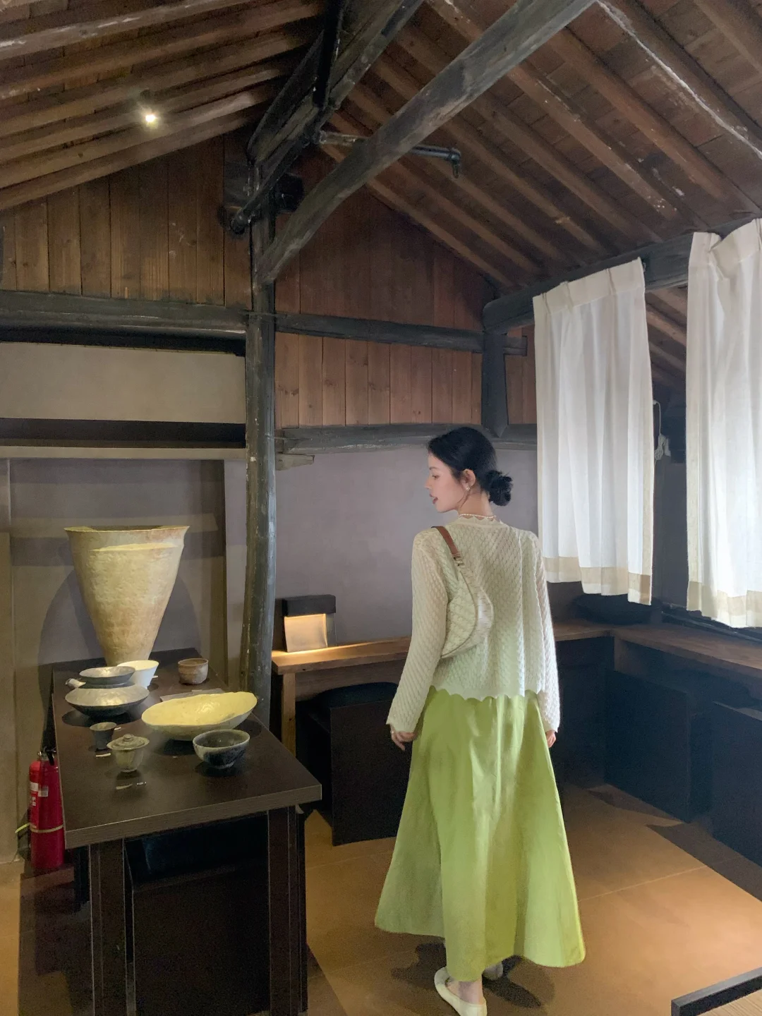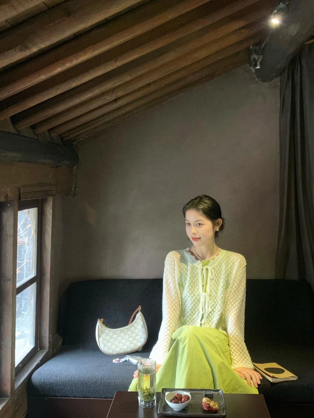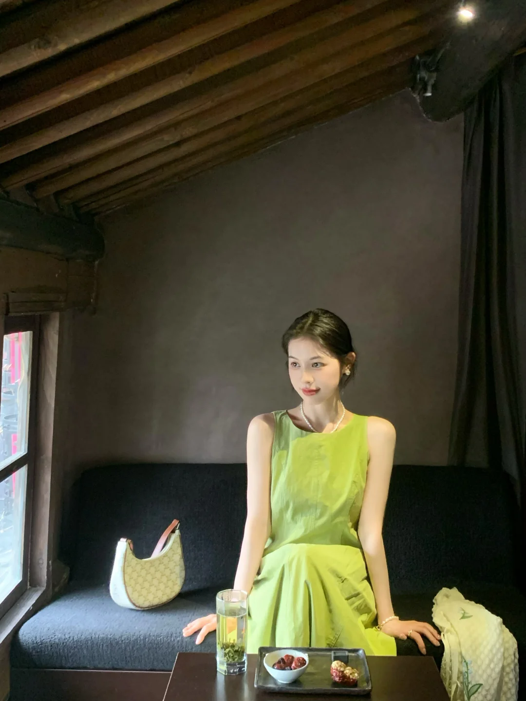 来拍照了 ootd 绿裙子