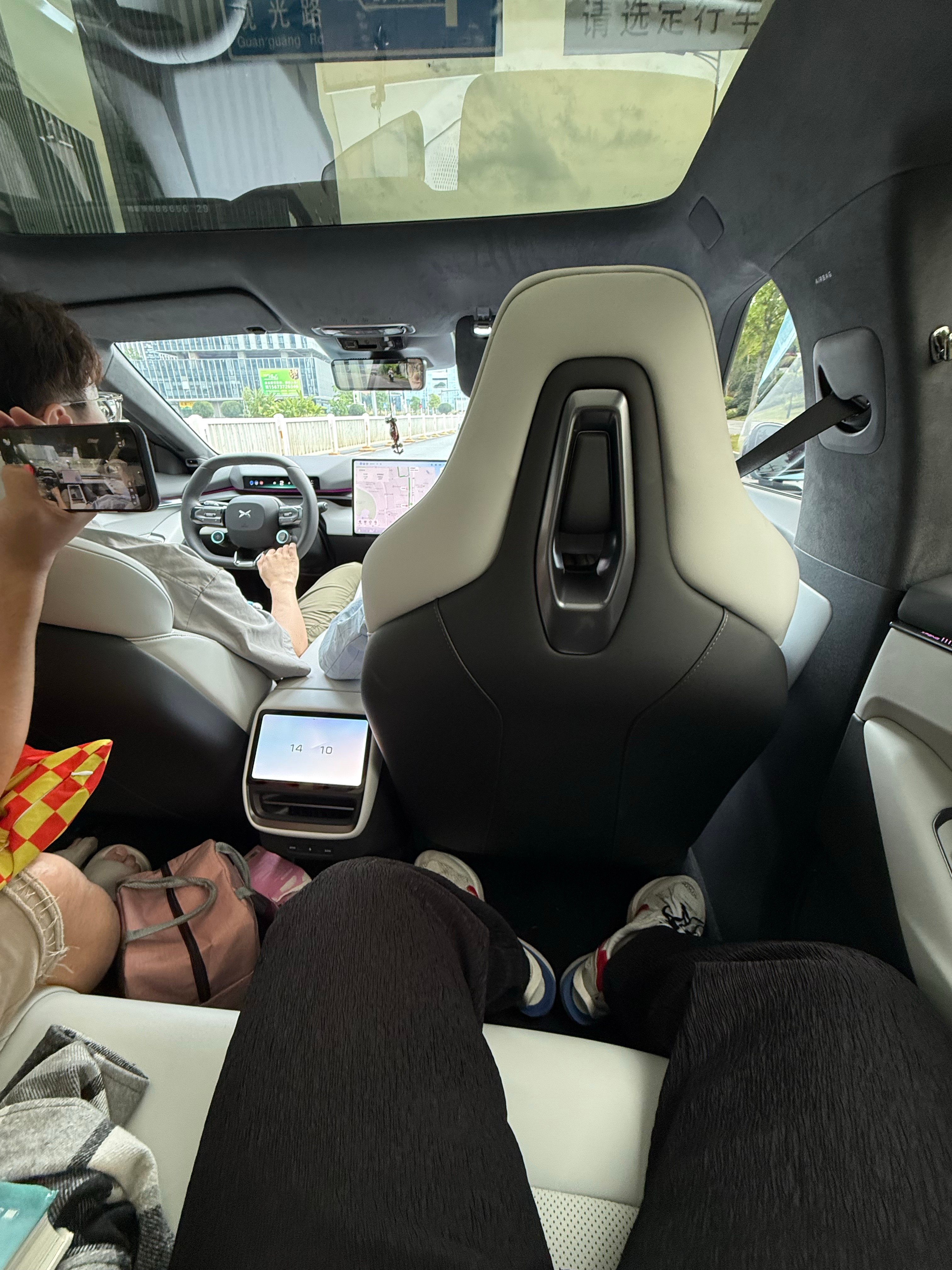 小鹏p7 这个后排真的是有点不尽如人意啊,地台还是太高了,我小短腿都这样,来个一米八大长腿该咋样但是!小鹏更新了vla之后,它的智驾表现真的太太太棒了!小米车主真心羡慕啊!! 深圳·光明