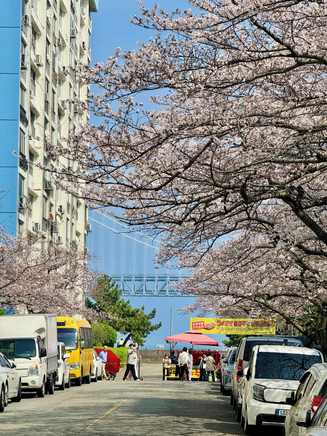 同样开的比较多,机位也更丰富,就在广里安海滩附近。能拍到樱花和大海的同框,还有各种街景,首推来这里!