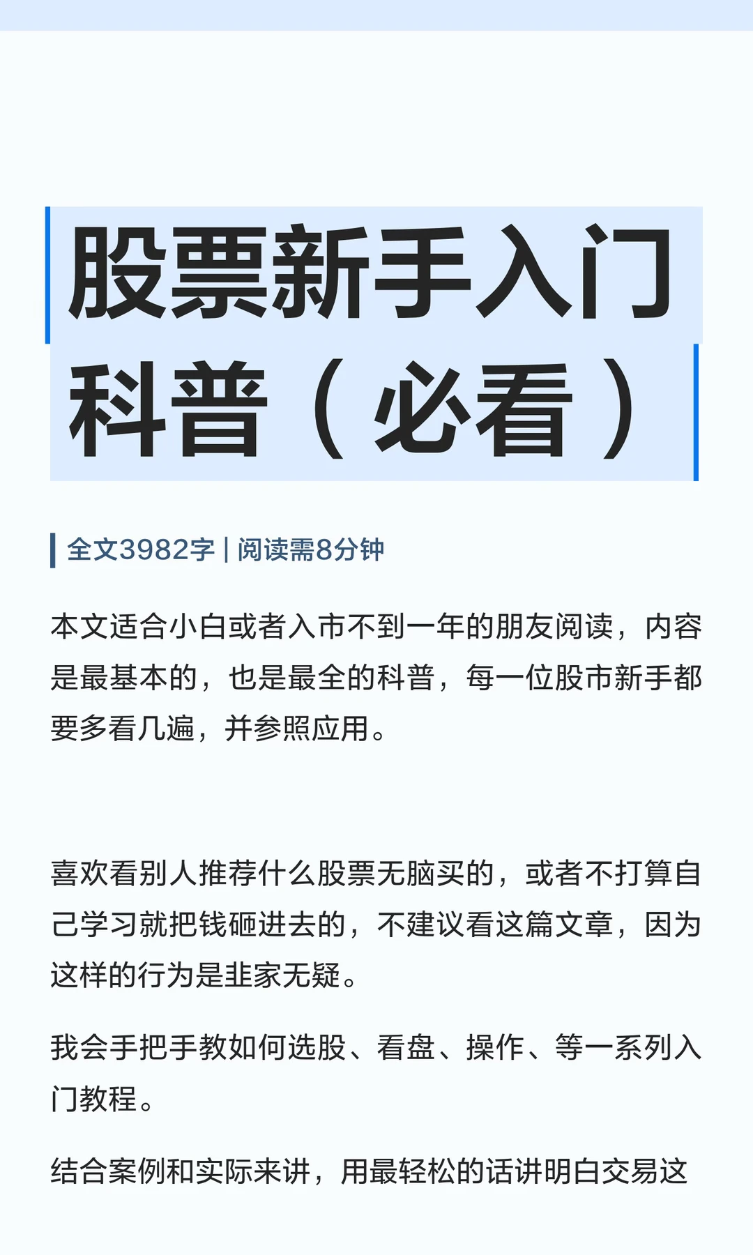 本文为新手朋友提供系统性股票投资指南,结合案例和实际操作,帮助投资者快速入门并上手交易。