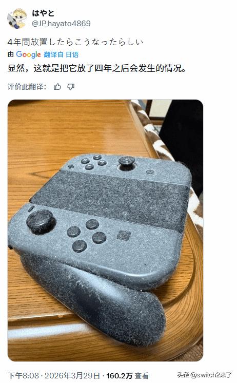 近日,日本玩家「はやと」晒出 Switch 手柄放置了 4 年未使用的样子,已经被厚厚的灰尘和绒毛包裹,原本的黑色手柄完全被灰黑色的絮状物覆盖,连按键和摇杆的轮廓都难以分辨。 这条动态迅速获得海量互动,网友们纷纷围观表示 “太离谱”“这是长了层壳吧”,甚至有游戏相关账号玩梗调侃 “这是要拿去博物馆展览”。 在原版 “长毛手柄” 爆火后,网友们晒出自己长期闲置的游戏设备,有网友晒出同样积满灰尘的 游戏主机,机身覆盖厚灰。