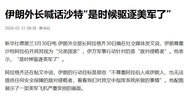 被打哭了!阿联酋摊牌:我们跟现在的伊朗没法共存,呼吁阿拉伯国家团结一致对抗伊朗! 3 月 30 日,阿联酋国务部长哈利法・本・沙欣・穆萨拉姆公开发表明确立场,直接说出在伊朗当前的行事方式下,阿联酋和伊朗 “与其共存是不可能的”。这句话不是随便的表态,背后是阿联酋这段时间实实在在的威胁,也暴露了它自己之前外交决策带来的后果。 阿联酋和伊朗都在波斯湾沿岸,隔海相望,都是海湾核心产油国,经济上本有合作基础,但地缘安全和利益矛盾一直没断过。阿联酋这些年在中东发展速度不慢,不管经济还是外交都想在地区有更大话语权,可和伊朗的关系始终是绕不开的难题。 这些年阿联酋一直紧跟美国中东战略,安全和军事上对美国依赖度极高。美国在阿联酋境内设了多个重要军事设施,最核心的是阿布扎比以南的宰夫拉空军基地,这是美国空军在海湾执行作战、侦察任务的重要保障,美军在这里驻扎大量人员装备,还部署先进武器系统。 除此之外,阿联酋还向美军开放多个过境和军事使用设施,等于给美军在中东搭了稳固前沿支点。阿联酋这么做,一是想靠美国军事力量保自身安全,二是想借美国影响力在地区占主动,心甘情愿给美军当马前卒,帮着美国推进海湾战略布局。可它只看到美国带来的短期安全,没算到这会埋下巨大安全隐患。 伊朗和美国是长期对手,美军在阿联酋的基地自然成了伊朗重点打击目标。从今年 2 月底开始,伊朗接连对中东美军目标发动导弹和无人机打击,多次针对阿联酋设施。 3 月 2 日,伊朗朝阿联酋发射 137 枚导弹和 209 架无人机,大部分被拦截,但碎片溅落迪拜和阿布扎比,导致迪拜国际机场一座航站楼受损,还造成人员伤亡。 3 月 7 日凌晨,伊朗革命卫队袭击阿联酋宰夫拉空军基地,基地空战中心、卫星通信中心和雷达设施被击中受损,后续卫星图像显示,基地多座机库被烧毁。3 月 28 日,伊朗再次打击迪拜两处美军 “隐匿据点”,还摧毁当地乌克兰反无人机系统武器库。 除了军事目标,伊朗打击还波及阿联酋经济命脉。3 月 28 日夜,伊朗革命卫队袭击阿联酋环球铝业塔维拉工厂,这座工厂是阿联酋工业支柱,严重损毁后基本停产,直接让阿联酋全球第五大铝生产国地位受重创。这些连续打击让阿联酋实实在在感受到生存威胁,之前靠美国当靠山的想法彻底动摇。 伊朗连续打击让阿联酋彻底慌了。它清楚单靠自己根本挡不住伊朗导弹,就算有美国支持,也不敢保证美国会一直全力保护。 所以它现在急着找帮手,想把整个阿拉伯国家拉到一起,形成对抗伊朗的联盟。它公开呼吁阿拉伯国家团结一致,本质是想找借口,把自身安全压力转嫁到其他阿拉伯国家,让大家为它之前的错误买单。阿联酋高层还私下向美国施压,极力推动美军发动地面战,想借美国力量彻底压制伊朗,完全不管其他阿拉伯国家的处境和利益。 阿联酋当初给美军提供基地,就是典型的引狼入室。伊朗本来和美国是死对头,美军在阿联酋的基地成了伊朗主要打击目标,伊朗导弹打向这些目标,本质是冲美国来的,可受伤害的是阿联酋自己。 它当初只想着抱美国大腿,没意识到美国中东战略是为自身利益,根本不会真正把阿联酋安全放在第一位。现在阿联酋挨了打,不想反思当初决策,反而想拉整个阿拉伯世界下水,让邻居为它的亲美政策买单,这是完全不负责任的行为。 阿联酋的表态对阿拉伯团结是巨大破坏。阿拉伯国家内部本就有不少分歧,不同国家利益诉求不同,有的和伊朗关系缓和,有的和阿联酋一样对伊朗有戒心。阿联酋强行呼吁抱团对抗,容易让阿拉伯国家内部分裂。 阿曼、卡塔尔等国更倾向外交解决,不想卷入军事冲突,阿联酋强硬态度会让它们两难。其他海湾国家也未必愿意跟着阿联酋硬碰硬,毕竟大家都有自己的算盘,不想为阿联酋错误承担后果。 阿联酋摊牌会进一步加剧海湾紧张局势。伊朗本就和美国对抗,阿联酋强硬表态会让伊朗认为阿拉伯世界要联合针对自己,必然采取更强硬措施回应。海湾地区军事对峙和摩擦会越来越频繁,原本不稳定的中东局势会更复杂。阿联酋经济本就因伊朗打击受重创,再加上局势持续紧张,经济复苏会更难,整个中东的和平稳定和经济发展也会受严重影响。 说到底,阿联酋是自己引狼入室,给美军当马前卒,现在尝到苦果,却想拉邻居一起买单。这种做法既解决不了自身安全问题,还会破坏阿拉伯内部团结,让整个中东陷入更危险境地。 对阿联酋来说,与其想着拉别人下水,不如好好反思外交政策,找一条符合自身利益和地区稳定的道路,而不是一味跟着美国走,最后把自己和整个阿拉伯世界都拖进冲突泥潭。