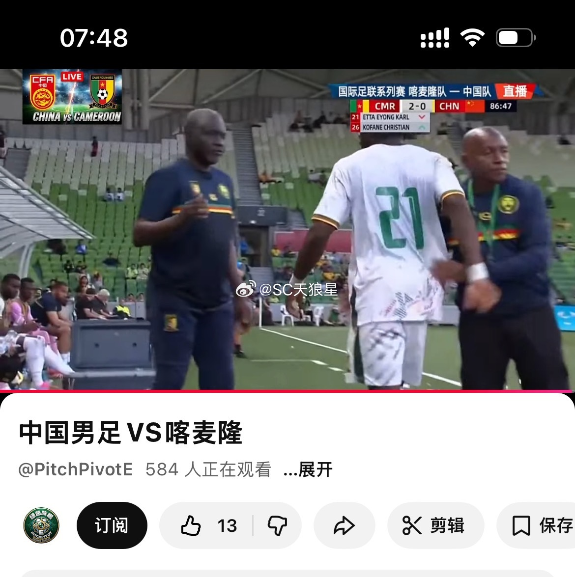 国足0比2喀麦隆邵佳一执教国足首败