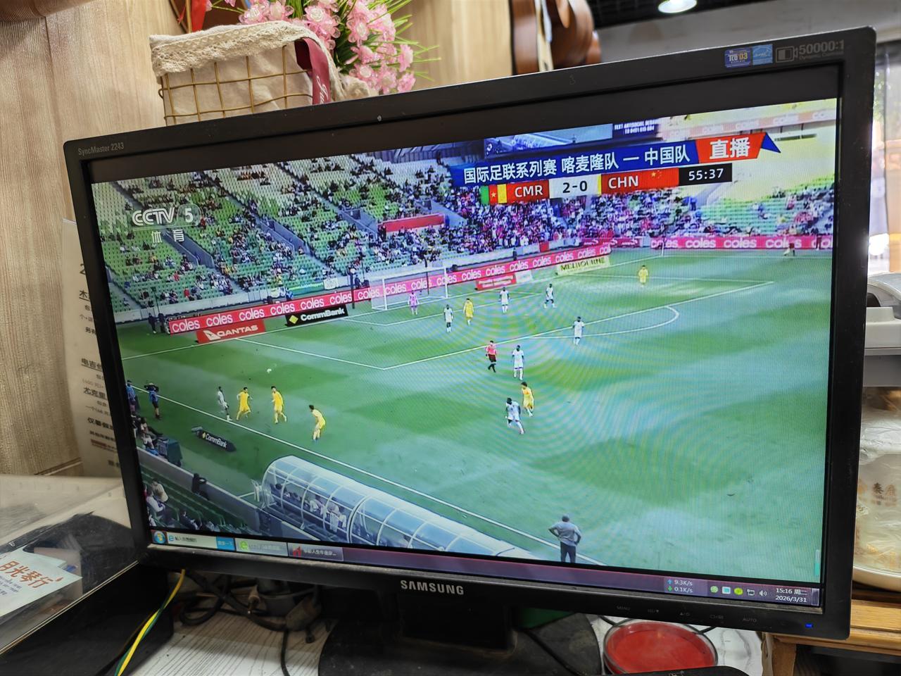 杨老师此刻看的中国足球对阵喀麦隆的比赛。他就像老父亲看那不争气的幺儿一样,拍了大腿,用了国粹也没进一个球。但是他还是热爱足球呀,他还是多想中国队赢呀。他说晚上他还要看u23的比赛。你觉得中国足球怎样?反正他每次看国家队我觉得还没得我们川超好看。足球