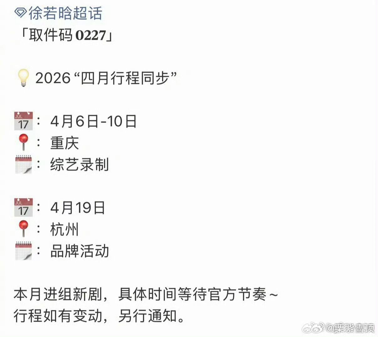 徐若晗四月进组新剧 徐若晗四月份要进组拍摄《明川有知夏》啦,守护热带雨林题材、期待这个动物医生温夏!!