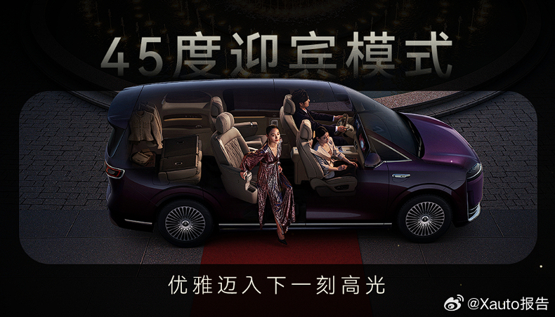 内饰方面,采用2+2+3座椅布局。第二排独立座椅支持多角度调节,可与放倒的第三排形成大床模式,实用性强。内饰提供绒霞紫、赤茶橘、韶华杏三种配色,未配备主流黑色内饰。