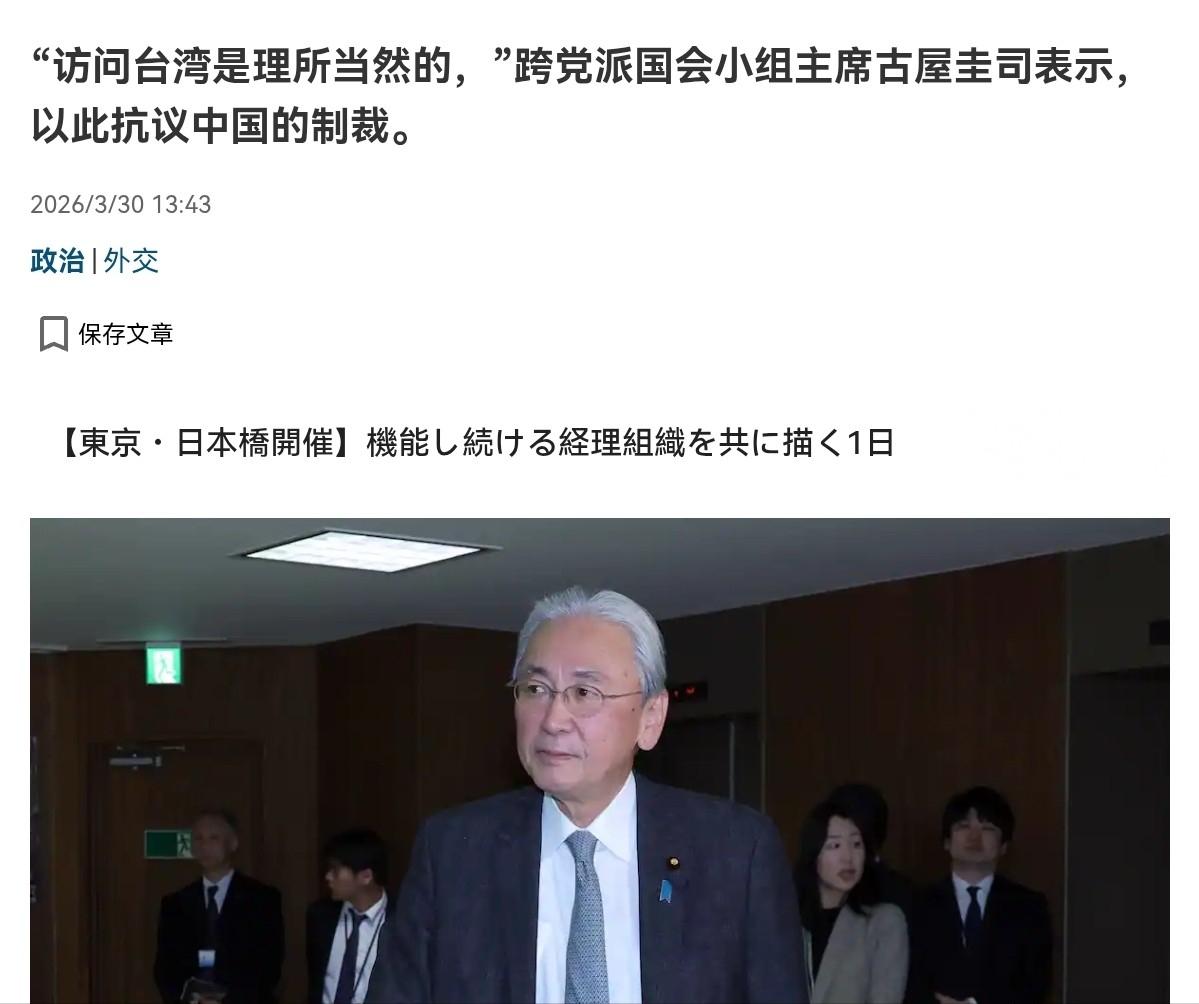 态度很嚣张!在被我们制裁之后,古屋圭司出来回应了! 3月30日,外交部正式宣布,对日本国会众议员古屋圭司采取反制措施。措施包括冻结他在我们境内的所有财产,禁止任何组织和个人跟他做生意、搞合作,而且从此不给他发签证,不准他踏入中国国门。 这可不是无缘无故的,而是因为他长期上蹿下跳,不顾我们多次警告和反对,一而再再而三地跑到台湾地区,跟那些“台独”分裂势力勾勾搭搭,严重干涉我们的内政,触碰了我们国家主权和领土完整的红线。 可你猜怎么着?制裁令刚一下达,这位古屋圭司就跳出来回应了,那态度,简直是嚣张跋扈。 他对着记者大言不惭地说,“访问”台湾对他们那个国会团体来说是“理所当然”的事。他还阴阳怪气地评论我们的制裁,说“这些制裁是典型的中国式做法”。 最气人的是,他摆出一副满不在乎的样子,声称自己“几十年都没去过中国,在中国也没有任何资产”,所以得意洋洋地得出结论:“这些制裁不会影响到我”。 听听这话,是不是觉得他特别硬气,好像我们的制裁真的拿他没办法? 但问题就在于,他这番话说得越轻松,越显得他目光短浅,甚至有点可笑。 他以为制裁只是冲着他个人那点可能根本不存在的银行存款和房产去的吗?他以为只要他自己不来中国旅游,我们的制裁就成了一纸空文?这完全是想错了,也看扁了中国反制措施的分量。 没错,他个人可能真的没有直接放在中国的资产,也可能几十年没来过,但他可不是一个孤零零的个体户。 他是日本执政党自民党的资深议员,更是日本国会里那个最大的亲台组织——“日华议员恳谈会”的会长,在这个位置上已经坐了八年之久。他还是日本首相高市早苗的核心亲信。 这些身份和头衔,意味着他背后有一张庞大的关系网,牵连着众多的政治盟友、所属的议会团体,以及那些可能想通过他打通对华关系的日本企业。 中国的制裁令白纸黑字写得清清楚楚:禁止我国境内的组织、个人与其进行有关交易、合作等活动。这句话的威力,可远远超过冻结他个人的账户。 这意味着,从今往后,任何想在中国挣钱的企业、机构,如果想跟古屋圭司本人,或者跟他所代表的那个“日华议员恳谈会”扯上关系,进行任何形式的商业往来或项目合作,都将面临巨大的法律风险,甚至是直接的禁令。 而那些原本想借助他这层关系开拓中国市场的日本公司,现在就得好好掂量掂量了。他所在的自民党内的派系,今后在处理任何涉华事务时,也会因为他的被制裁身份而处处受限,变得束手束脚。 所以说,古屋圭司的回应,表面上嘴硬,实际上暴露了他的短视和侥幸心理。他把一场严肃的国家主权捍卫行动,简化成了对他个人生活有没有影响的算计。这更像是一场演给日本国内右翼势力和台湾岛内某些人看的政治秀,试图用“不在乎”的姿态来撑场面、鼓士气。 因此,古屋圭司今天可以嘴硬地说“没影响”,但这种法律和政治上的孤立效应,会像一道无形的墙,逐渐将他以及与他紧密关联的势力隔绝在对华正常交往的大门之外。 除非他所属的那些团体、企业乃至政治盟友选择与他彻底切割,划清界限,否则他们在所有涉华事务上都难免受到牵连。中国的市场、中国的机会,对他们来说将变得可望而不可及。 这才是制裁真正深远和厉害的地方。 而古屋圭司的表演,在历史的大势面前,终究只是一段微不足道的杂音。