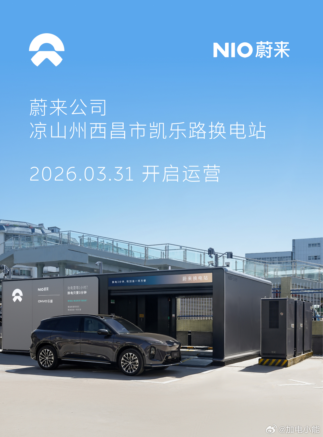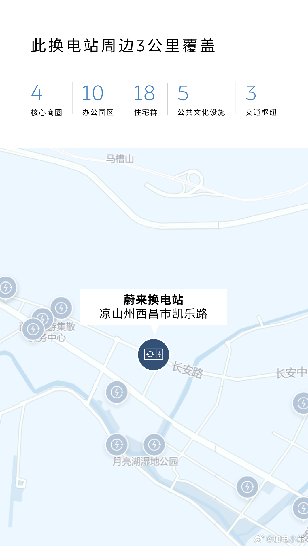 换电站是电动车的加油站蔚来换电站 | 凉山州西昌市凯乐路 上线周边3公里覆盖4大核心商圈、10大办公园区、18大住宅群、5大公共文化设施、3大交通枢纽截至3月31日,蔚来已在四川省布局161座换电站