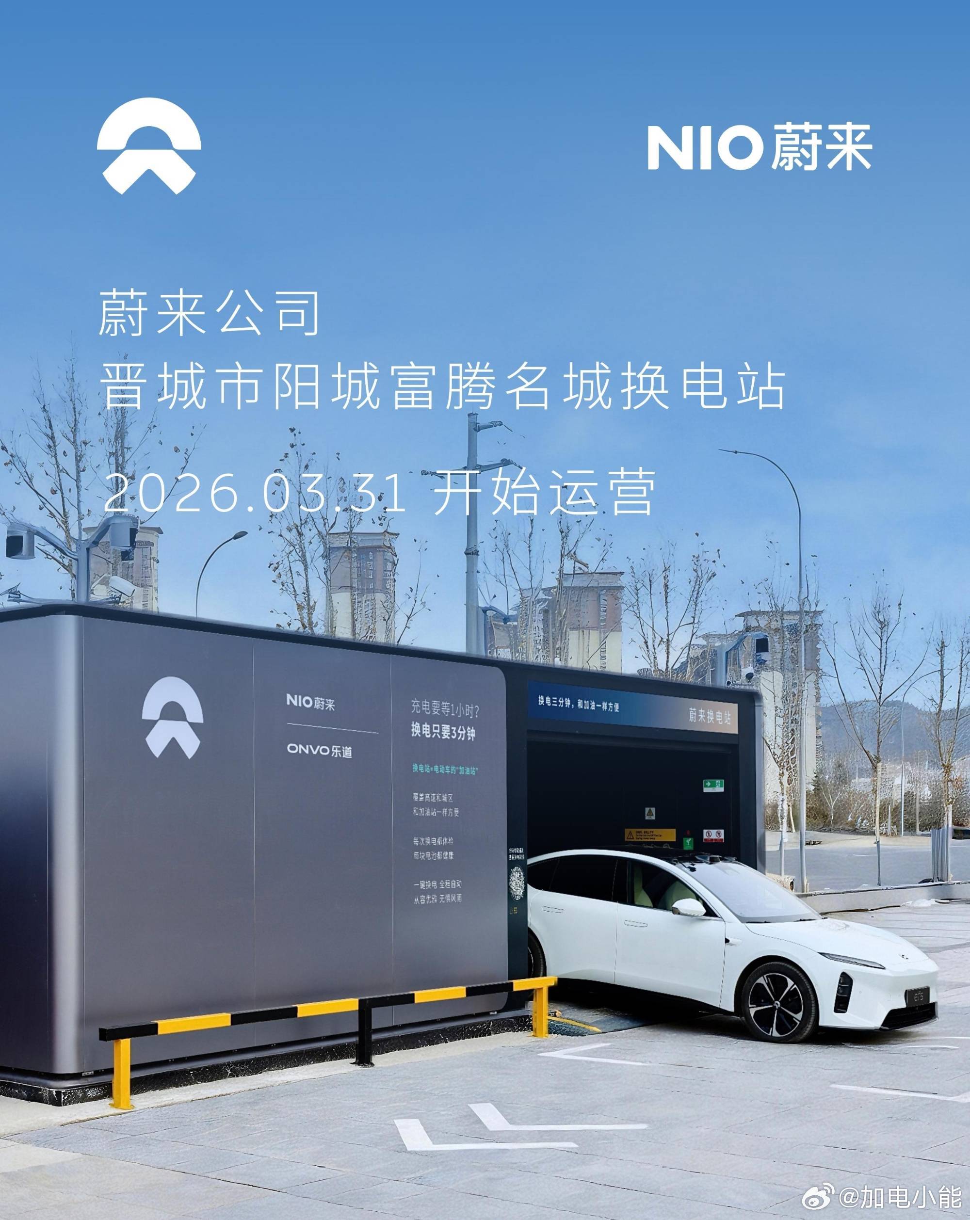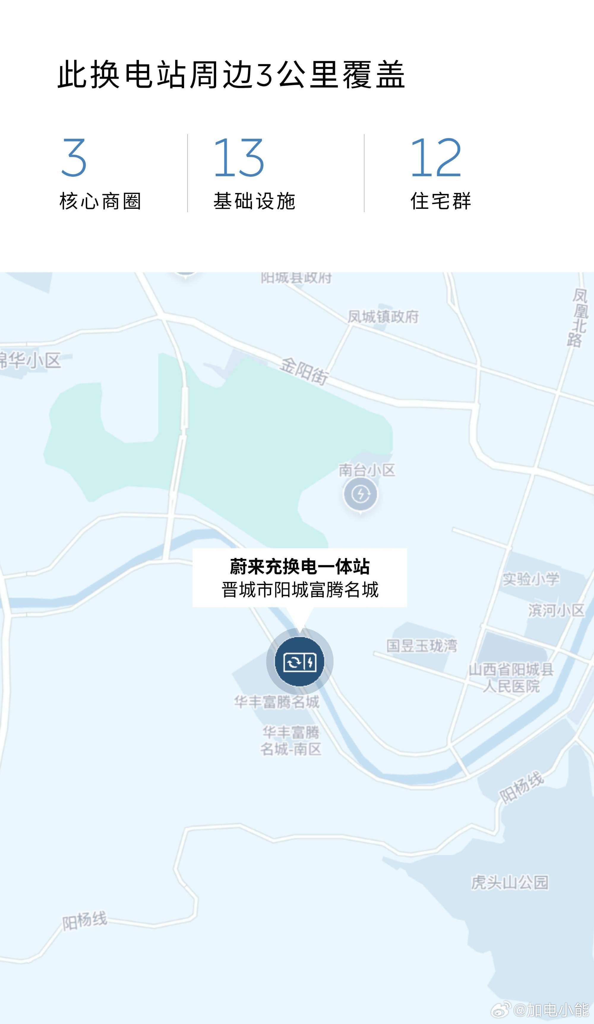 蔚来换电站 | 晋城市阳城富腾名城 上线周边3公里覆盖3大核心商圈、13大办公园区、12大住宅群截至3月31日,蔚来已在山西省布局53座换电站