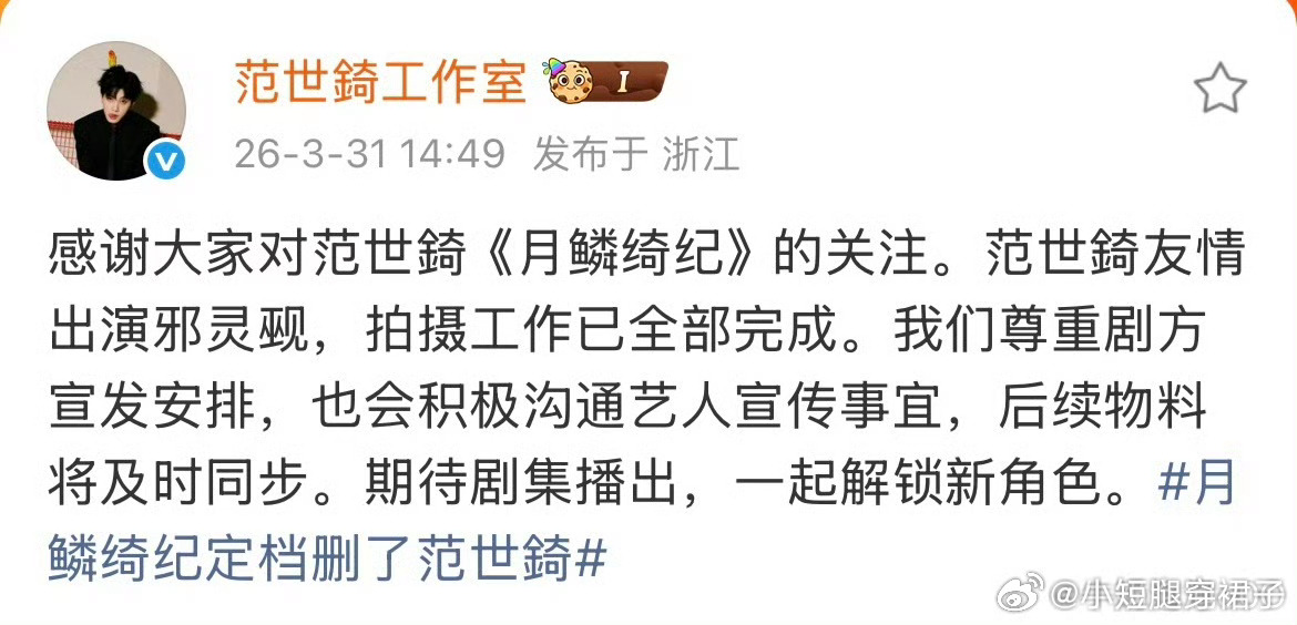 月鳞绮纪定档删了范世錡应该是怕互联网有记忆,感觉他莫名其妙就被拖下水了
