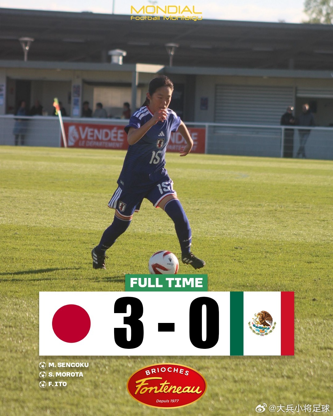 ⌚️北京时间3月31日0:30KO🏟️Fontenay le Comte:⚔️u16日本女子代表 3-0 U17墨西哥女子国家队⚽️得点者仙石みの(图四)伊藤風葵 (图五)諸田彩渚 (图六)