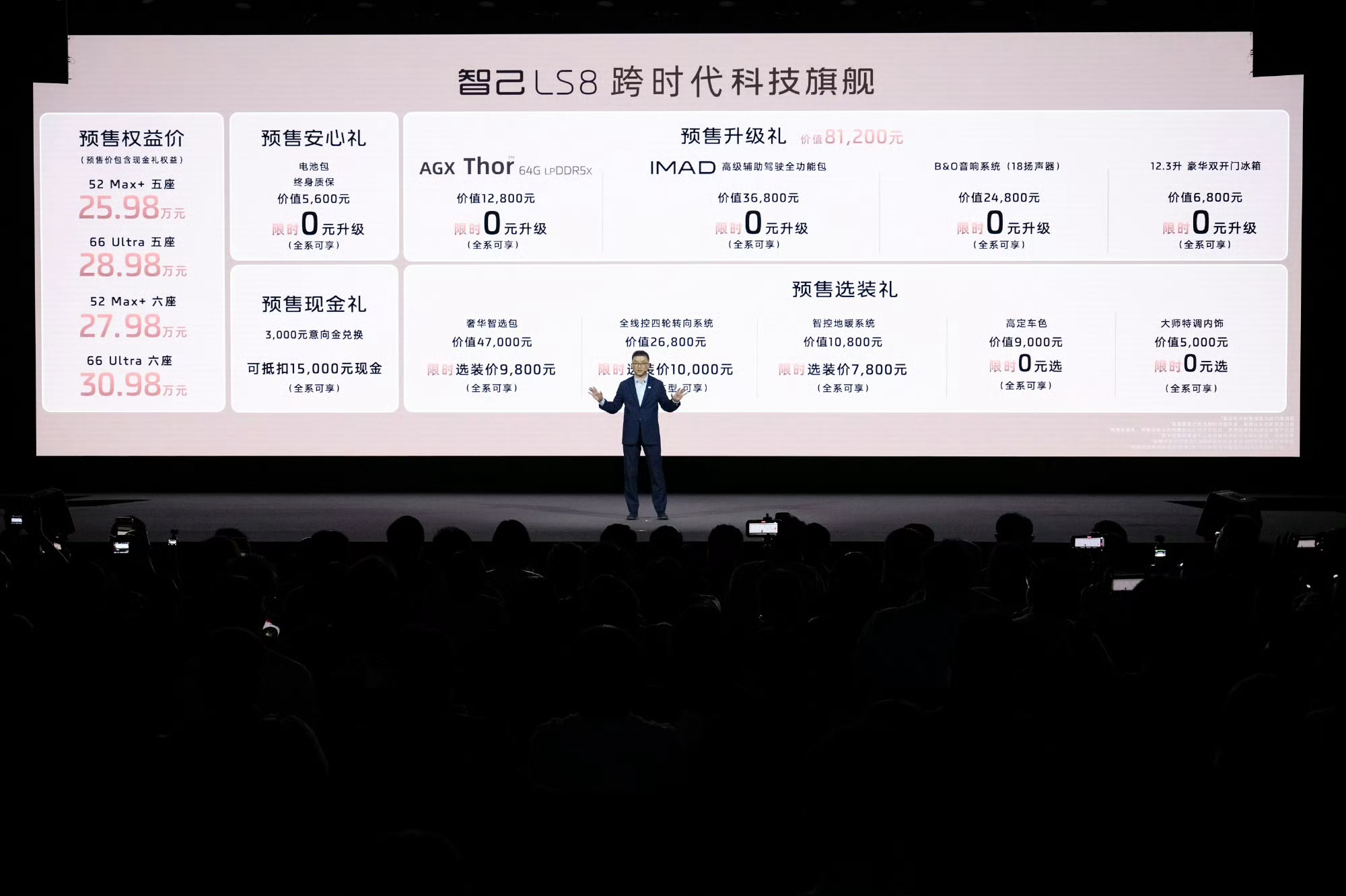 空间与舒适性上,LS8采用超宽体座舱,大五座空间宽裕,六座版本可满足多人出行,配备B&O音响、4D按摩座椅、智控地暖等配置,后备箱装载能力突出。