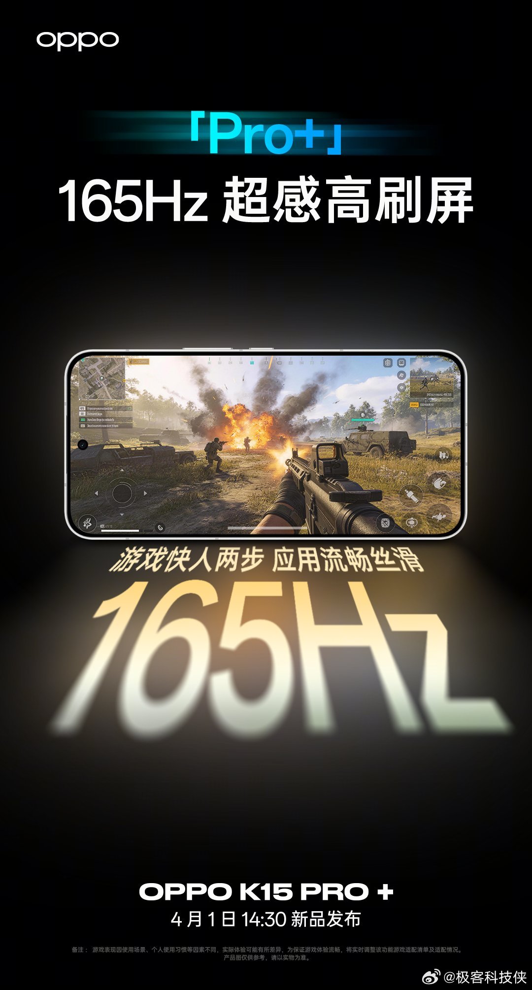 恭喜你!蹲到了OPPO K15 Pro 系列 的one more thing,OPPO K15 Pro+。超感触控芯片+灵犀按键+专业手柄级陀螺仪,让你人机合一,超感操控Pro+;165Hz高刷屏+6.78 英寸超大屏幕+1.5K 高分辨率,游戏快人两步,超感视效Pro+;超感临场双扬+星海音乐学院与OPPO金耳朵实验室联合调音,超感音效Pro+;天玑 9500s+OPPO 潮汐引擎,芯片级性能调校,性能上限Pro+。