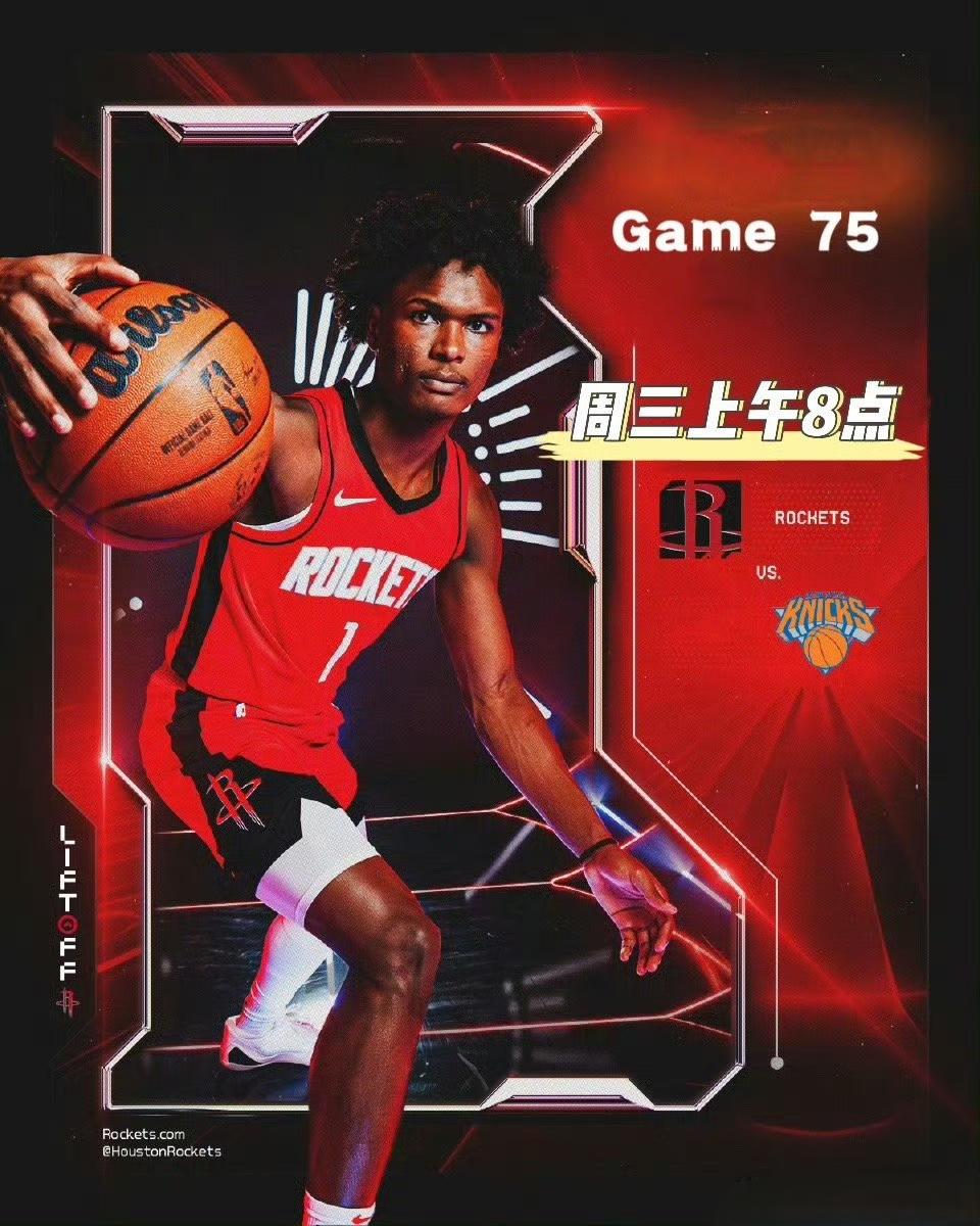 火箭四月首战明天八点主场迎战尼克斯。💪