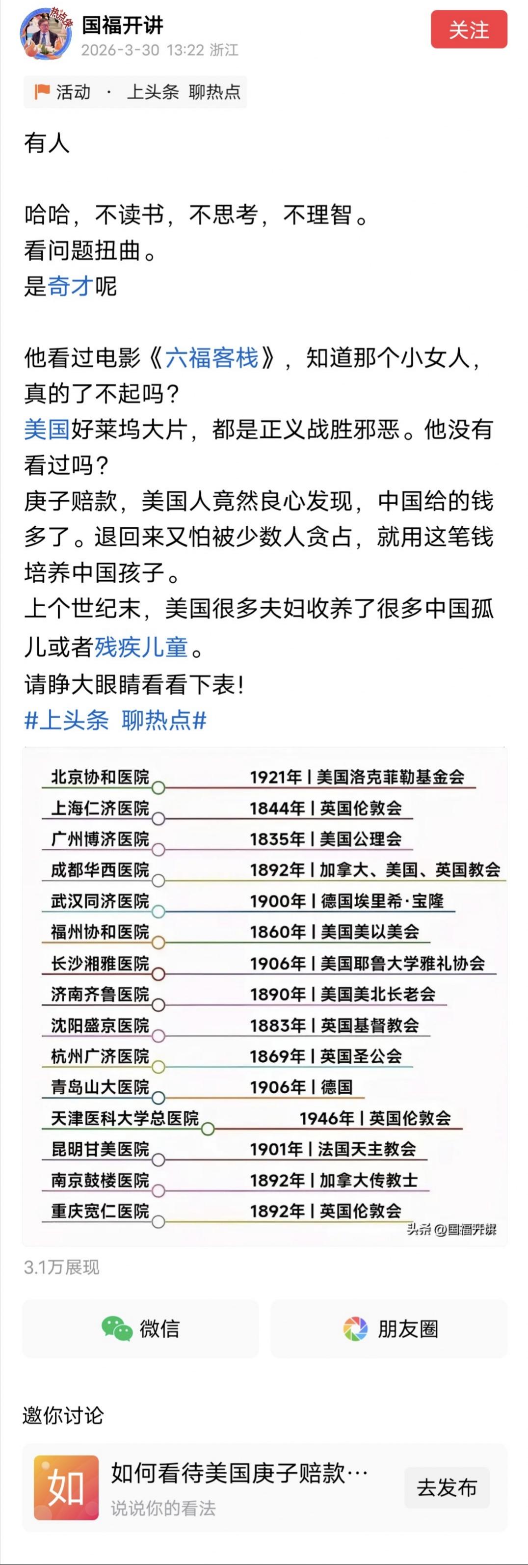 @国福开讲 别再拿“美国良心发现退庚子赔款”这种鬼话骗人了! 咱们先把本质说透:庚子赔款,本就是八国联军侵华抢来的赃款,美国所谓“退款”,根本不是发善心,是多讹了钱吐出来一部分,还得攥在自己手里,逼着用来培养亲美代理人,搞文化渗透,这叫侵略的延续,哪来的善意?拿现代收养中国孤儿给百年前的侵略贴金,纯属偷换概念的逻辑诈骗! 要拆穿美国的“慈善人设”,就看它对印第安人干的事:建国后数百年种族灭绝,《印第安人迁移法》搞出“血泪之路”,无数原住民惨死;更狠的是强制寄宿学校,暴力抢走印第安儿童,禁母语、毁传统、施虐待,数万孩子死于非命,这是实打实的文化灭绝、种族清洗! 连本土原住民都能斩草除根,美国会对万里之外的中国良心发现?纯属笑话!所谓退款办学,就是文化殖民的遮羞布。 “国福开讲”这种美化侵略、跪舔美国的货色,就是对民族对历史的背叛! 赔款条约 八国联军之殇