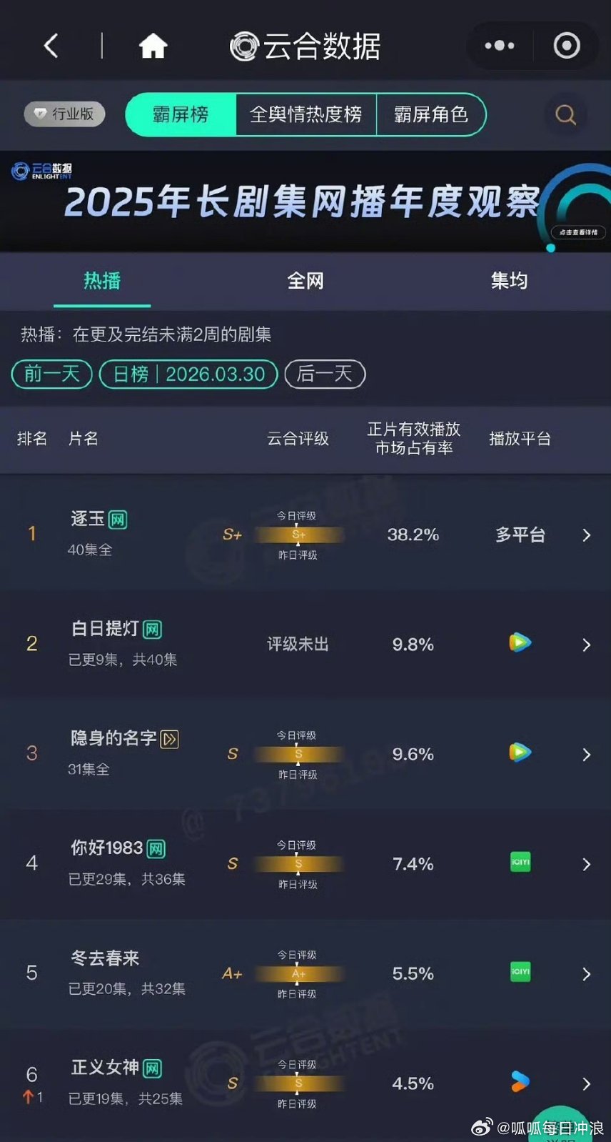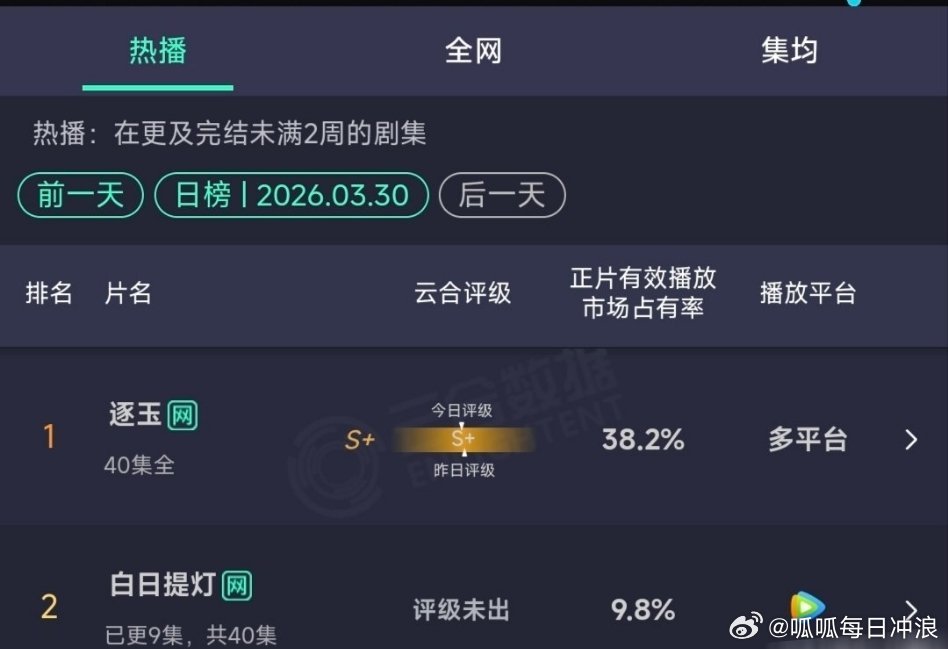迪丽热巴、陈飞宇白日提灯今日云合第二,占有率9.8%,这个成绩如何?