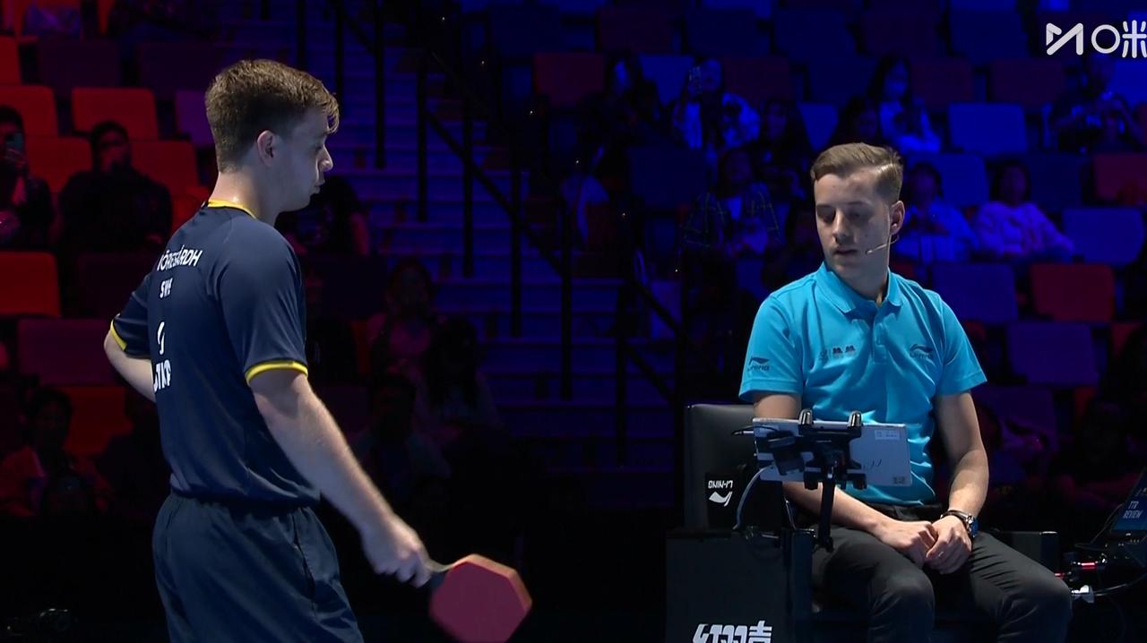 莫雷加德还真是个倔种! 第一局 小莫12:10拿下。 第二局 小莫两次因为回抛被判罚, 两次挑战鹰眼失败。 第二次的时候, 小莫还不服, 试图说服裁判。 就连侯英超都说: 鹰眼都显示了30.28度, 再解释也没有用。 小莫太倔了, 还想说服裁判,哈哈 不过这次世界杯, 裁判判罚非常严格。 第三局 小莫打太极了, 以柔克刚 朴康贤懵了, 小莫11:3拿下。