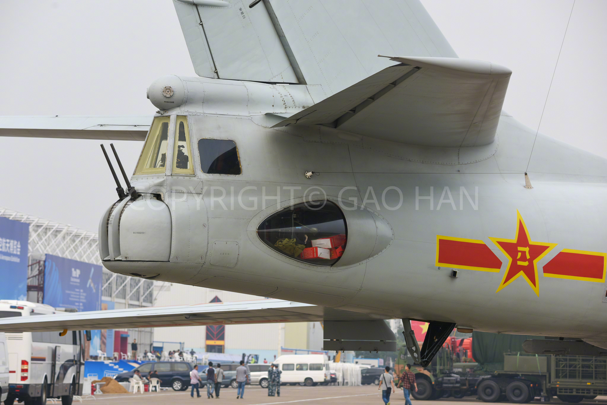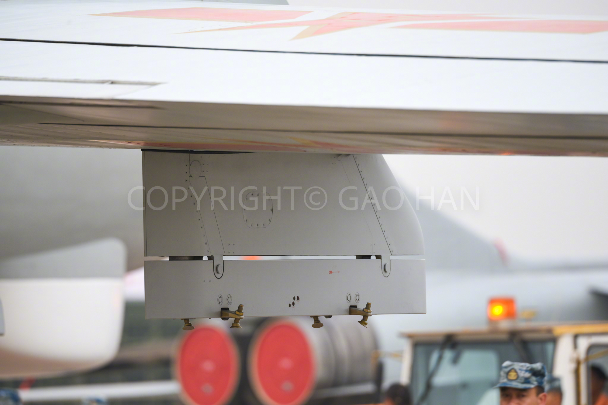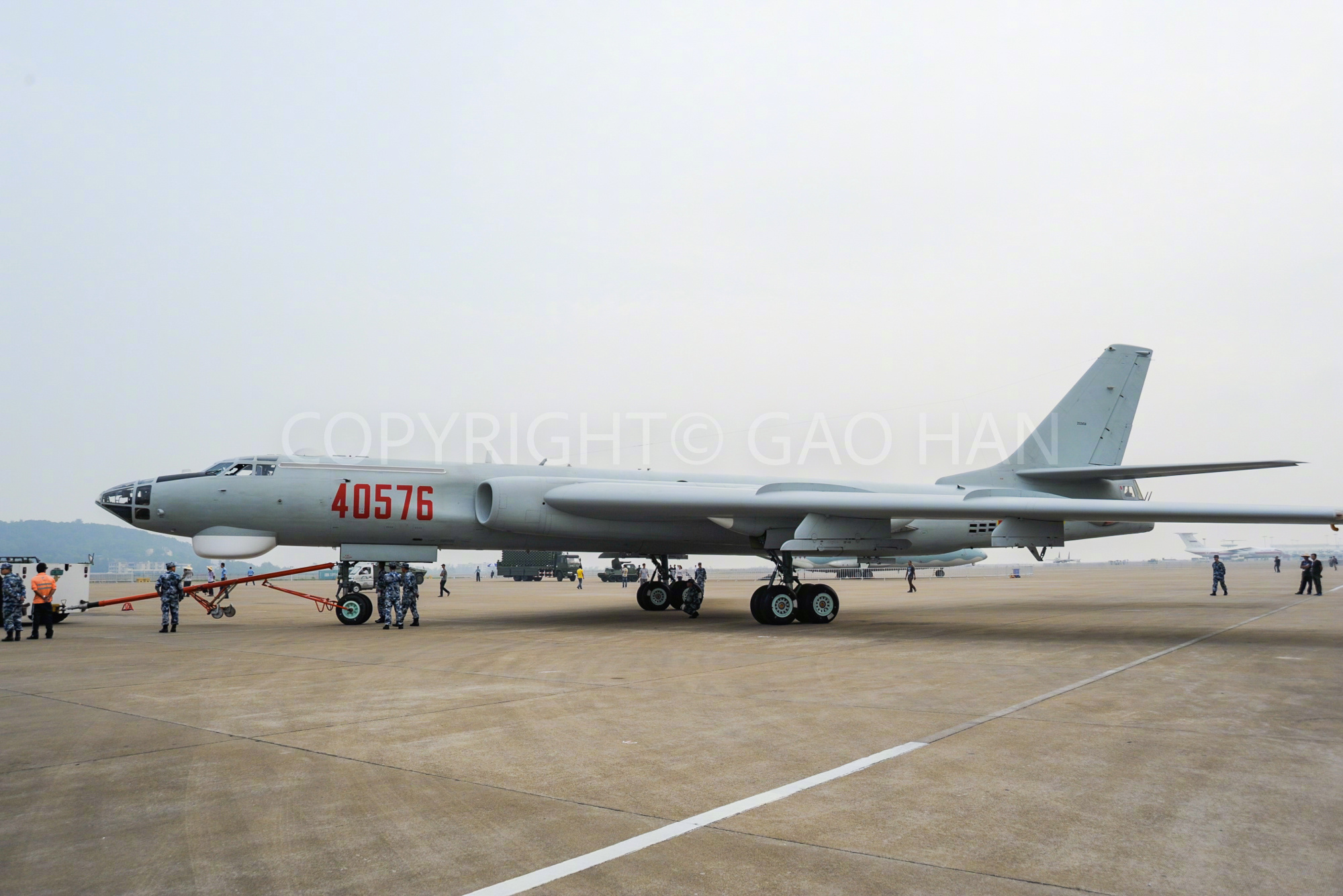 轰-6M只在2014年中国航展上出现过一次。这是种以长剑巡航导弹为主要对地打击武器的轰炸机,具备防区外发射远程精确制导武器的打击能力,可威胁第二岛链目标。轰-6M在外观上的一大特点就是翼下共有4个挂架,而轰-6H只有两个。这两个机型在细节上差异很多,对比来看比较有意思。令人不解的是,轰-6M保留了极度落后的护尾机炮。航空君航空科普 航空创作计划 烽火问鼎计划