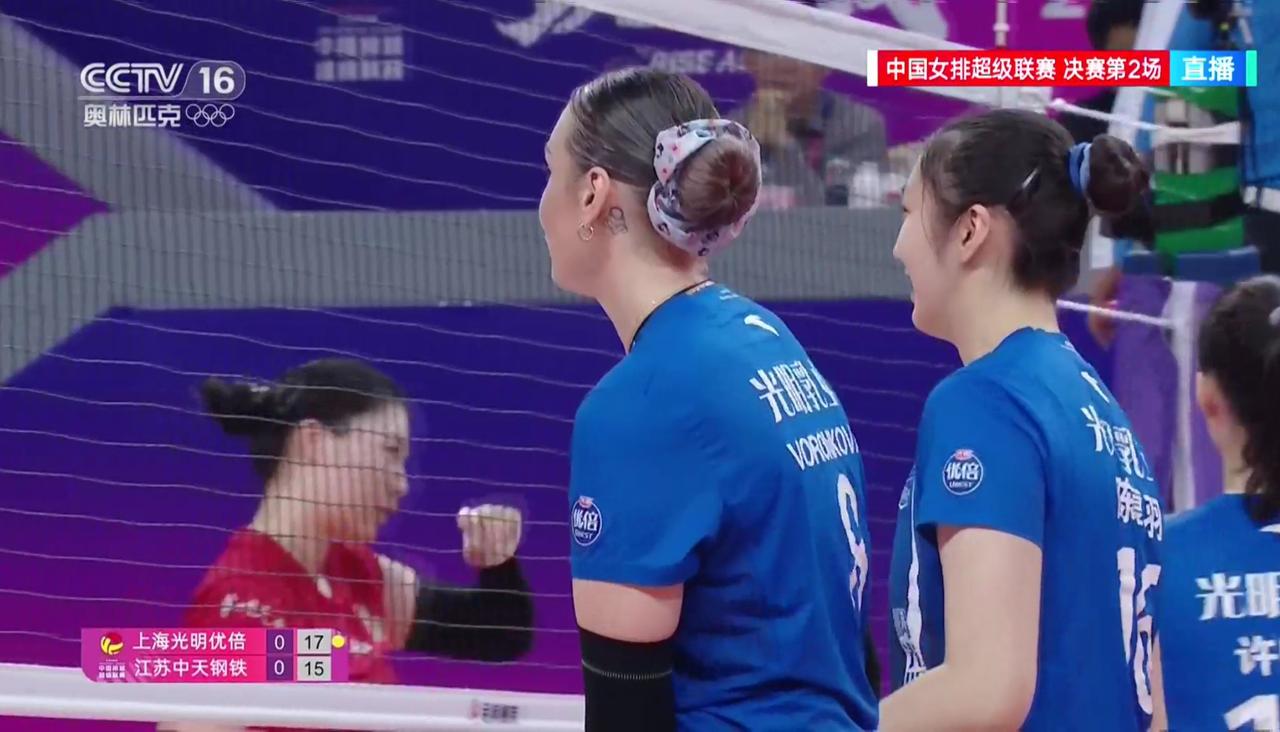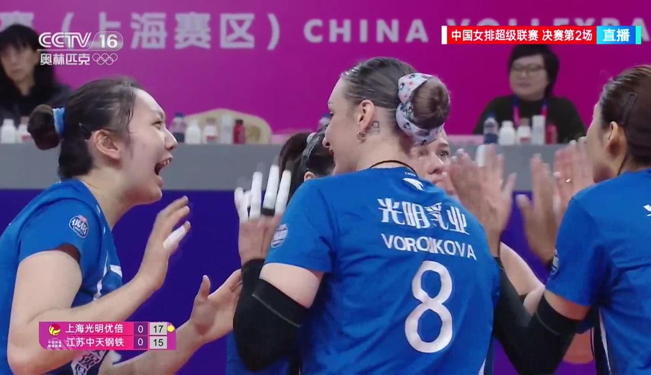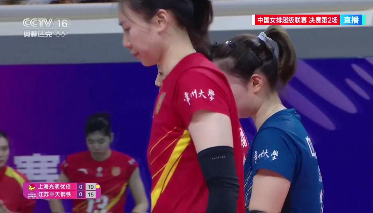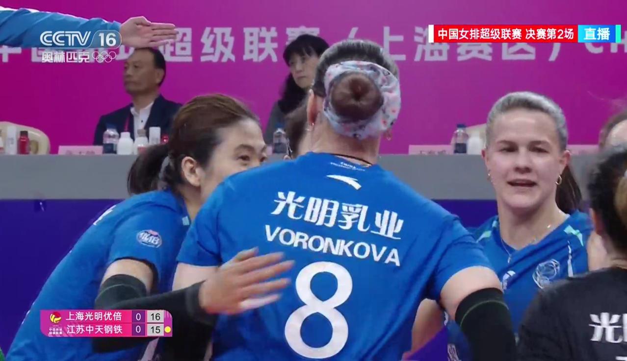 【女排超级联赛】冠亚军决赛(2):上海——江苏 实时战况: 3月31日晚19:00时,女排超级联赛冠亚军决赛上海——江苏的第二回合比赛在上海队的主场开打。第—局开始,上海发球,1:0,外援吊球。陈厚羽继续发球,2:0,2:1,发球下网。2平,吴梦洁。3:2,外援后攻。3平,吴梦洁。4:3仲慧打手出界。5:3,仲慧发球得分。5:4吴梦洁。5平,吴梦洁。6:5,外援吊球得分。6平,吴梦洁。7:6,外援。7平,许晓婷发球出界。8:7,外援。9:7,唐欣扣球被拦。10:7,江苏暂停。11:7,唐欣连续失分。12:7,吴梦洁接球失误。12:8,13:8,陈厚羽。13:9,周页彤。13:10,江苏拦网。14:10,仲慧。15:10,外援发球得分。15:11,15:12,万梓玥拦网。16:12,高意。16:13,16:14,万梓玥。上海暂停。19:15,19:16,万梓玥背飞。20:16,陈厚羽拦网。21:16,上海领先。21:17,万梓玥。21:18,22:18外援。23:18,23:19,23:20,唐欣。上海暂停。24:20,25:20,上海胜第一局,大比分1:0,上海领先! 第二局比赛正在进行中……