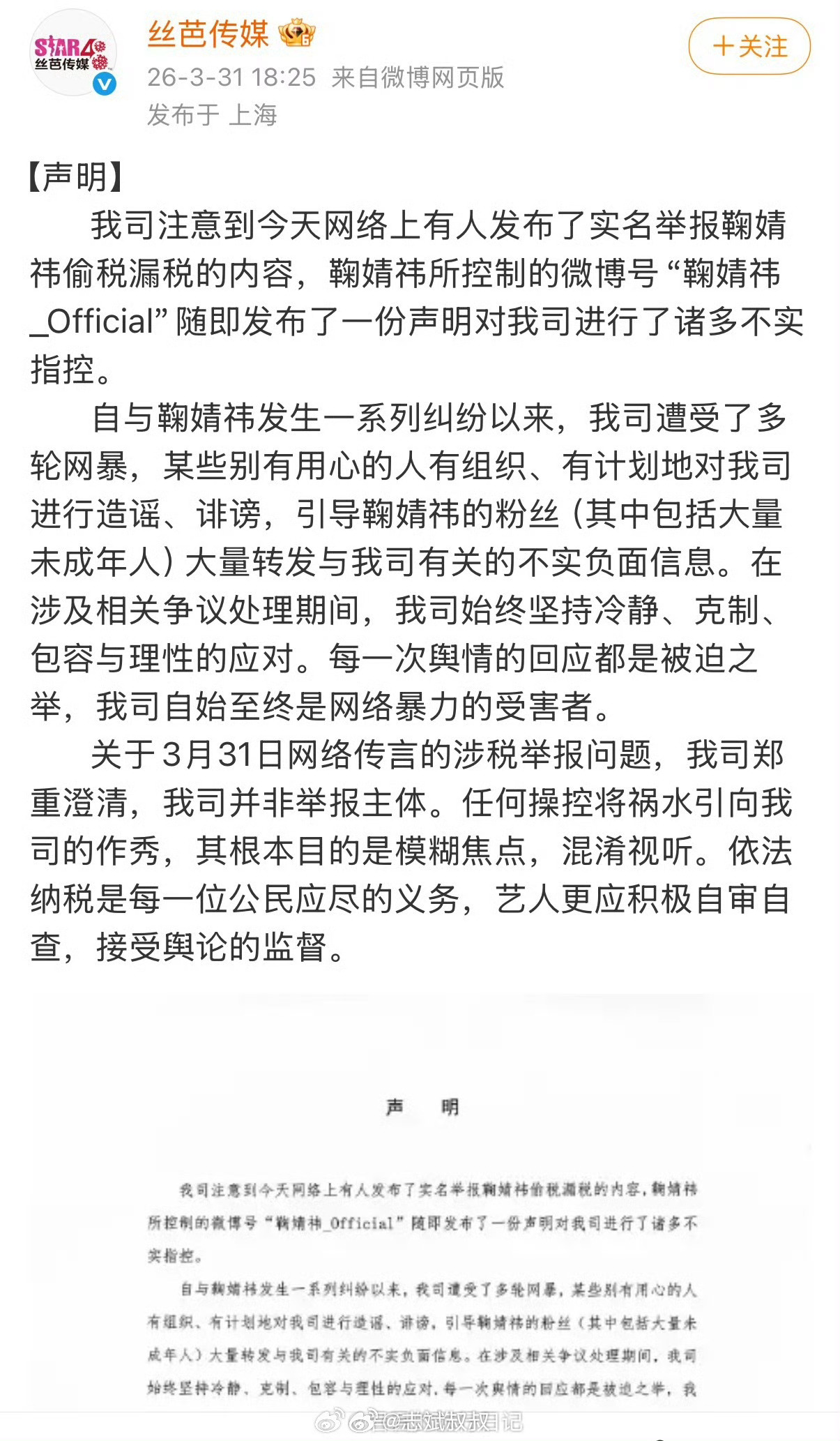 丝芭三问鞠婧祎刚刚丝芭发声明表示,自己不是举报主体,别被混淆视听。