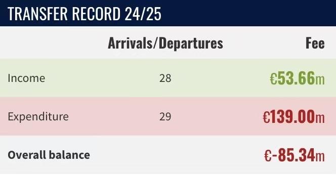 【为什么看好夏天投入】 之前我个人观点预测,假设今年米兰稳稳进欧冠,肯定投入少不了,我认为保守估计,红鸟至少维持在前两个有欧冠赛季的水平,净投入大于5000万,假设腾挪一下不看净投入,应该能达到1.5亿+水准。 依据很简单,除了本赛季之前的两个赛季经验之外,明显米兰有点在“迫不及待”花钱。 转会窗还没开,什么安德烈,什么科斯蒂奇,就开始了,且后者官宣,前者据说最新报价来到1800加400左右的水平,虽然安德烈可能签不下来,但是可以看到这个花钱的能力和意愿。 再加上冬天想要3500拿下马特塔的魄力,再加上过去一年多三个3000+引援(圣地亚哥 亚沙里 恩昆库),全意甲绝无仅有,五大联赛除了几个绝对财阀球队外,米兰的投入也是绝对可以的。 我之所以比较信任夏天米兰的投入,第一是基于刚才这些现象,第二就是基于米兰租借在外球员的收入价值,第三就是进入欧冠带了的财务收益。 当然还是那句话,花不花钱和好不好用,是两个话题,咱们别掺和在一起聊。