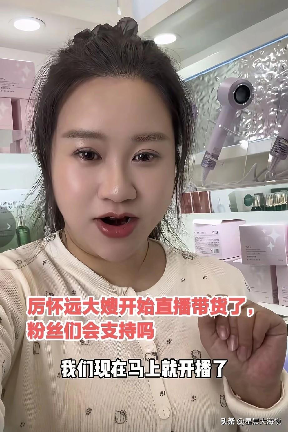 原来大厉前天发视频是为了今天的直播带货做铺垫了 刚开始的时候看到厉怀远大嫂独自一个人出镜头介绍产品, 然而直播间能听到大厉和三水的声音, 刚开始的时候直播间能有6000以上的人在直播间观看 有好多人都在问厉怀远和林丽的事怎么样了,但是大嫂就是不回复,装看不见这些言论, 后来直播间人气下来了,3000多左右吧!