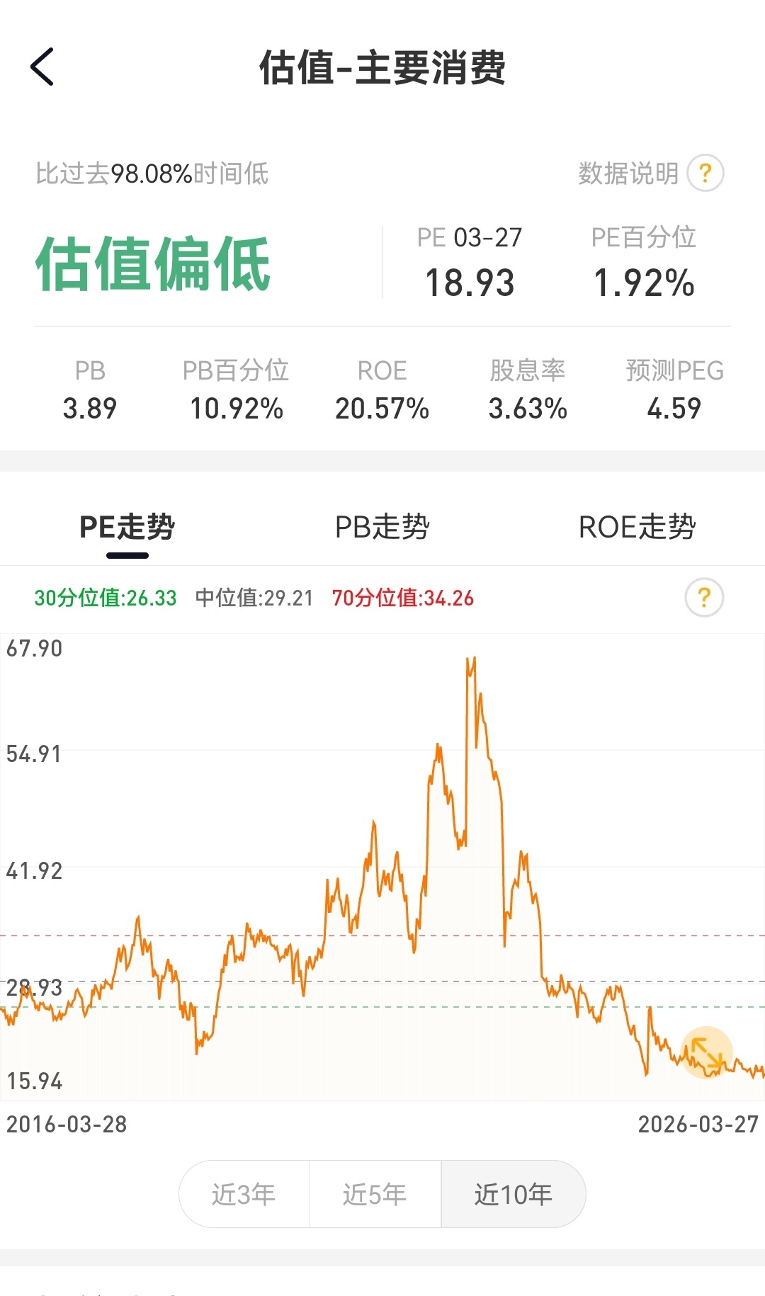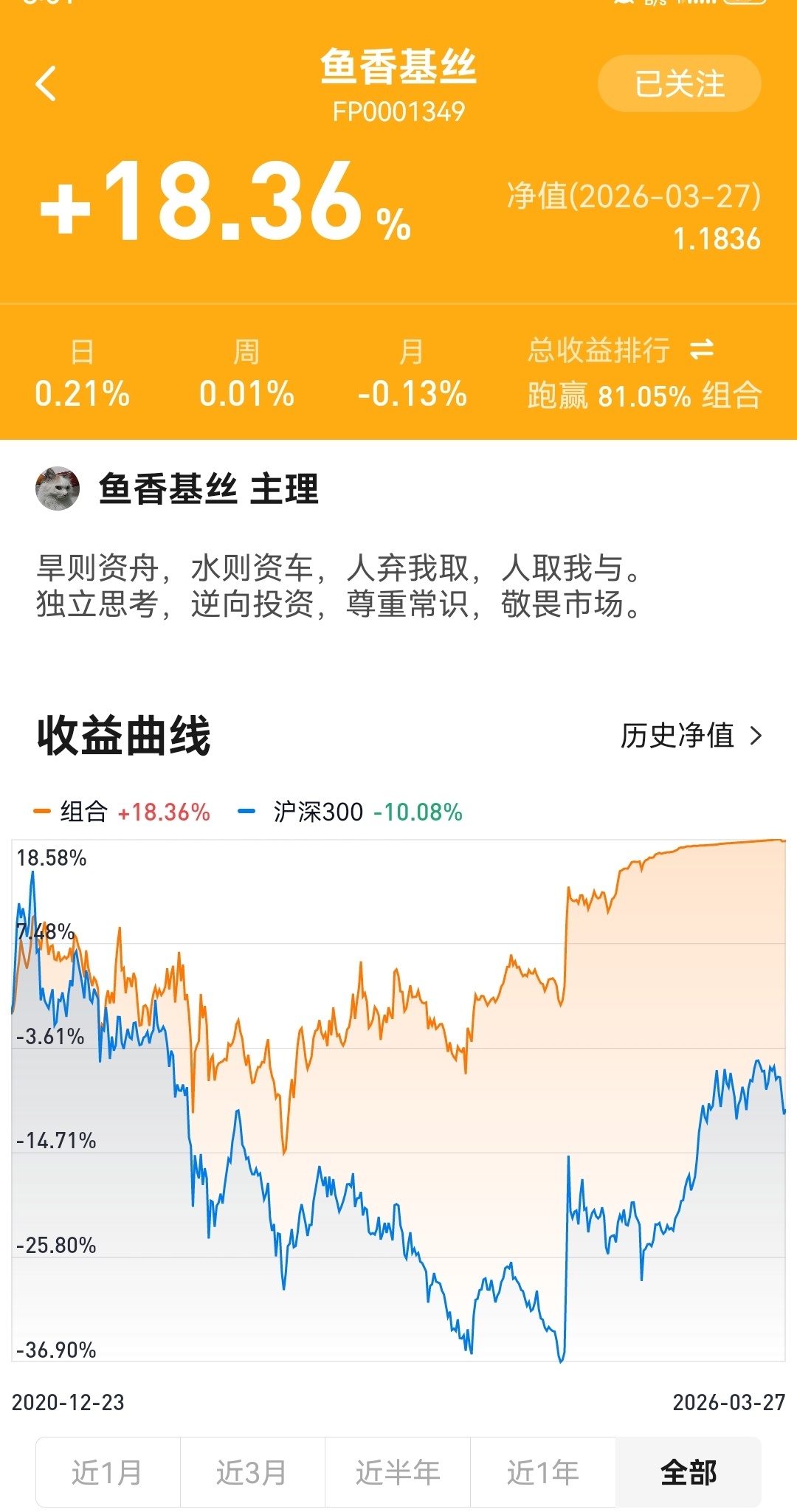 2026年3月27日鱼香基丝指数基金投资组合实盘周报 成立以来场外组合收益率18.3%,场内组合56.6%,跑赢同期沪深300指数28个百分点。本周继续加仓极低估蓝筹指数,组合总仓位18%,仓位具体占比为:港股通互联网指6%,港股通消费指数4%,中证消费指数4%,中证医疗指数4%。最近全球股市暴跌,a股更是打响了3800点保卫站,趁着大跌创新低,继续加仓极低估指数基金,目前消费指数pe百分位低至2%,互联网指数为9%,都是非常低估,而且指数的成分股都是一些大家耳熟能详日常经常熟知的大品牌,趁着低位慢慢加仓,不断买入好公司的股份。随着美股、黄金的暴跌,各种永远涨的投资信仰都破了,价值回归还是规律,涨多了就会跌回来,这是小学生都知道的道理,我们空仓躲过了暴跌,现在是慢慢捡便宜的好公司的时候了。看到很多人先大跌赔钱了,开始赖地区战争,但中东已经打了一个月了,现在才想起来,这不就是赚钱赖自己,赔钱赖别人的巨婴思维吗,大家千万不要学。投资永远是为自己的人性和认知买单。现在股市依旧高估,大盘下跌是大概率时间,耐心等待低估蓝筹指数创新低,手握现金心不慌。独立思考,逆向投资,尊重常识,敬畏市场。股票a股港股