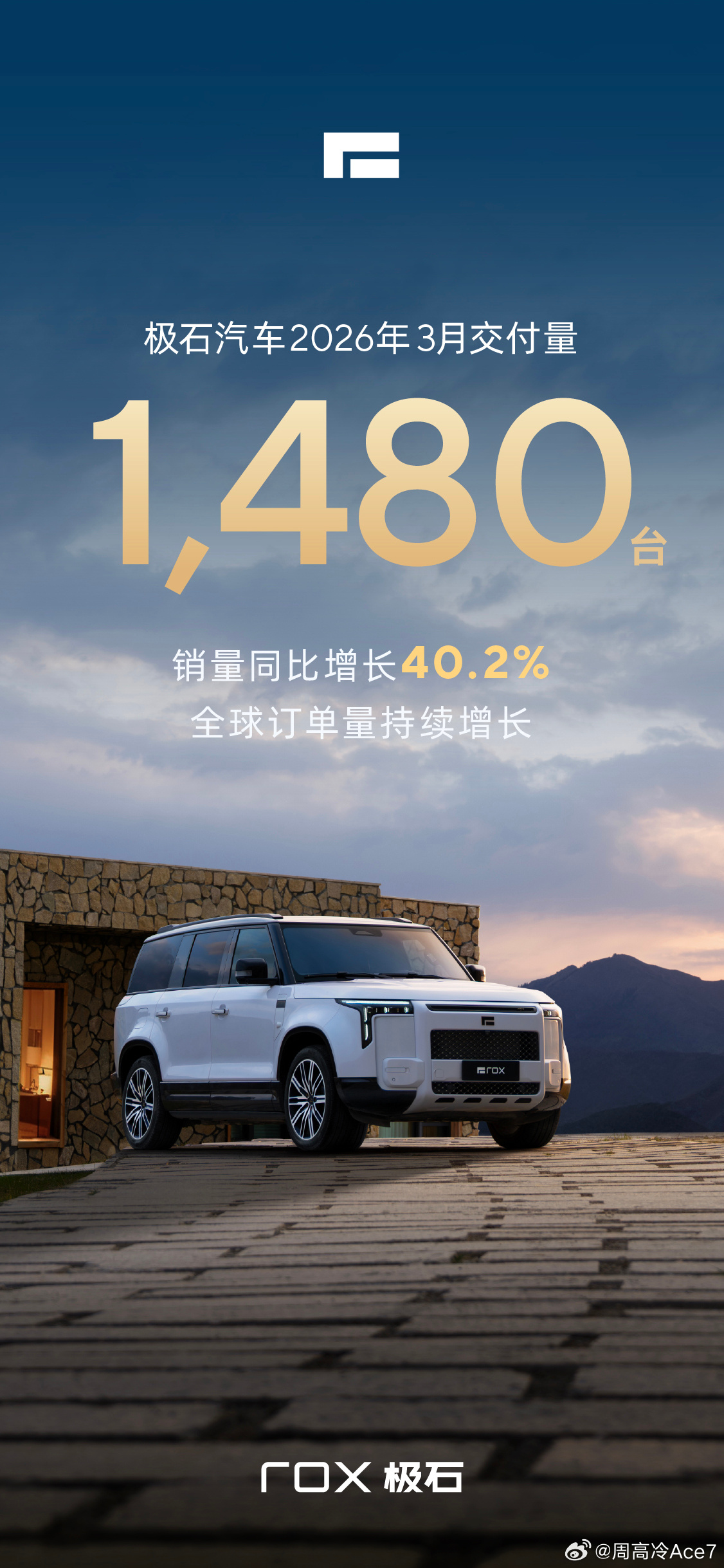 极石汽车3月交付1480台!逆势而上,同比增长 40.2%,