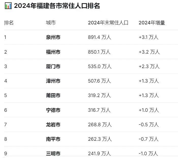 福建第一人口大市去年户籍人口减少0.55万人! 数据显示,2024年泉州市的户籍人口数据为773.49万人,常住人口为891.4万人。对比2025年的数据,户籍人口数较上一年减少0.55万人。另外,2025年的泉州市的常住人口数据暂未公布。 据了解,长期以来,泉州一直是福建省内人口最多的城市。2024年泉州市常住人口为891.4万人,高居省内第一。比省会福州多出了41.3万人。
