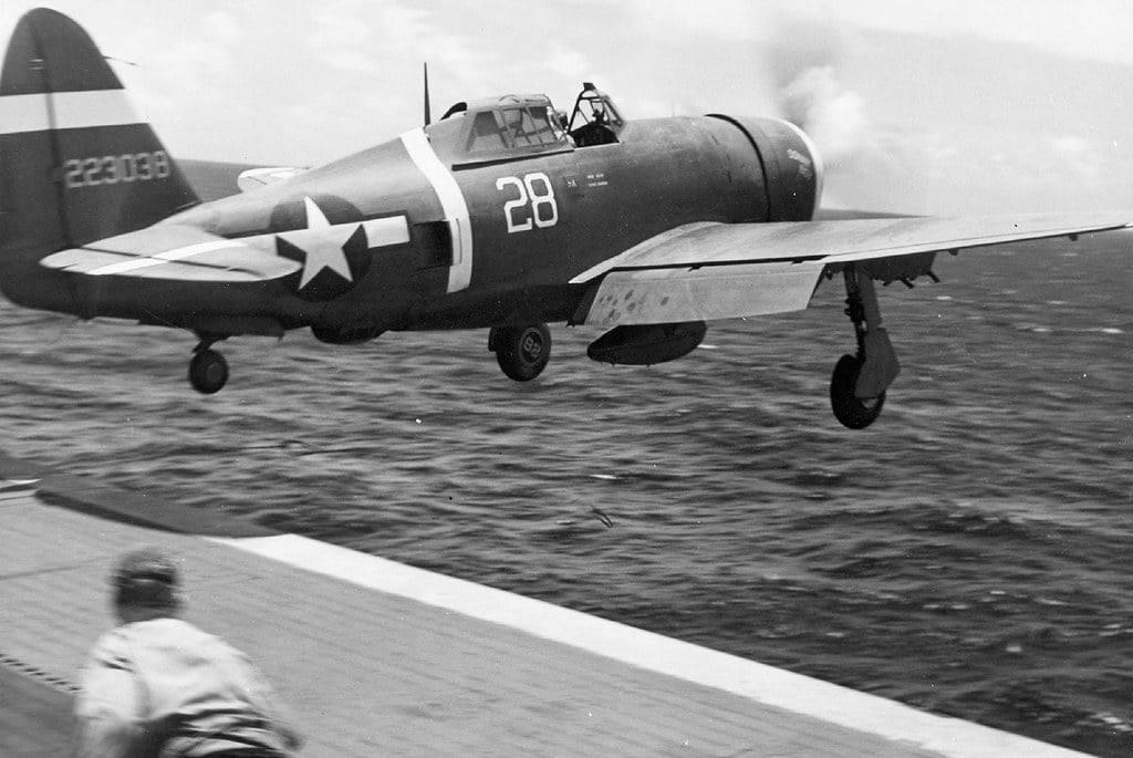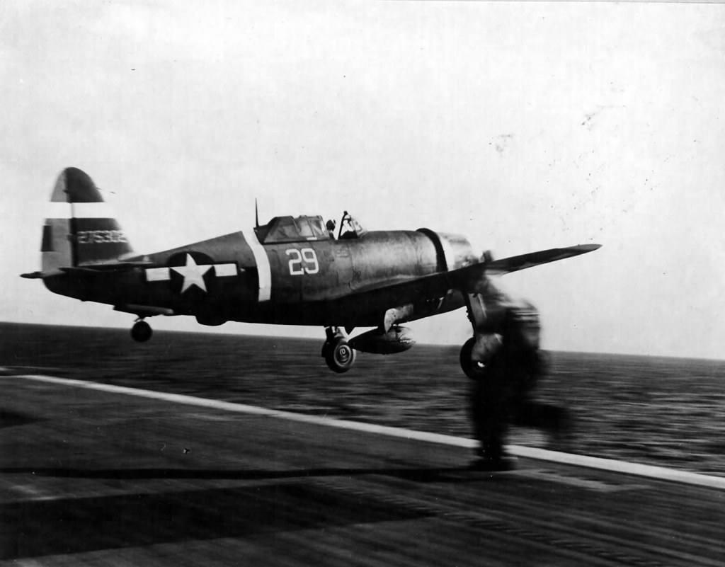 二战时期有个超罕见的画面:美国陆军航空军的P-47“雷电”战斗机,竟然从美国海军的航空母舰上起飞,更难得的是,其中几架还直接升空投入了战斗! 事情要从1944年说起,珍珠港大修后的美国海军护航航母“马尼拉湾”号(CVE-61),搭载了37架陆军P-47战机和相关机组人员,准备运往马里亚纳群岛。 同年6月5日,“马尼拉湾”号起航向西航行,抵达目的地后,在塞班岛以东待命,此时美国海军其他部队正在菲律宾海战役中牵制日军。尽管日军已处于劣势,但抵抗并未停止。 6月23日,一小队日军爱知D3A“瓦尔”俯冲轰炸机突袭“马尼拉湾”号,投下的炸弹均未命中,第一张照片里能看到炸弹落水后激起的巨大水柱。 当时附近没有友军航母提供空中支援,“马尼拉湾”号舰长当机立断,决定动用船上搭载的P-47战机。4架P-47从航母甲板起飞,执行战斗空中巡逻任务,掩护航母、威慑日军后续进攻。 等到空域安全后,这4架战机继续飞往目的地塞班岛,剩下的P-47在第二天全部起飞,顺利抵达,没有出现任何意外。 其他照片则记录了陆军飞行员在飞往塞班岛前召开简报会、航母船员在甲板上调度这些大型战斗机的场景。 “马尼拉湾”号成功送达战机后,还收到了雷蒙德·斯普鲁恩斯海军上将的祝贺,他称赞舰长在临时组织空中巡逻时,展现出了“值得称赞的主动性”。