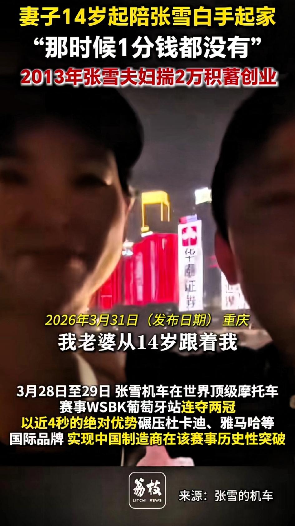 张雪的老婆从14岁起就跟着他。张雪现在39岁,他老婆至少跟了他20年,20年见证了张雪从一穷二白到现在闻名海内外。这样始终不离不弃的女人,值得张雪珍惜一辈子。 跟张雪妻子一样的好女人很多,从十几岁就开始跟着一个男人,但结局各不相同。守得云开见月明的不少,有的男人不忘初心,抱着感恩之心过一辈子,有的男人只能共苦不能同甘,嫌弃糟糠之妻。更多的情况还是没有大富大贵,两口子就平平凡凡过一生,虽然平凡但是弥足珍贵,能把日子过好就是成功。