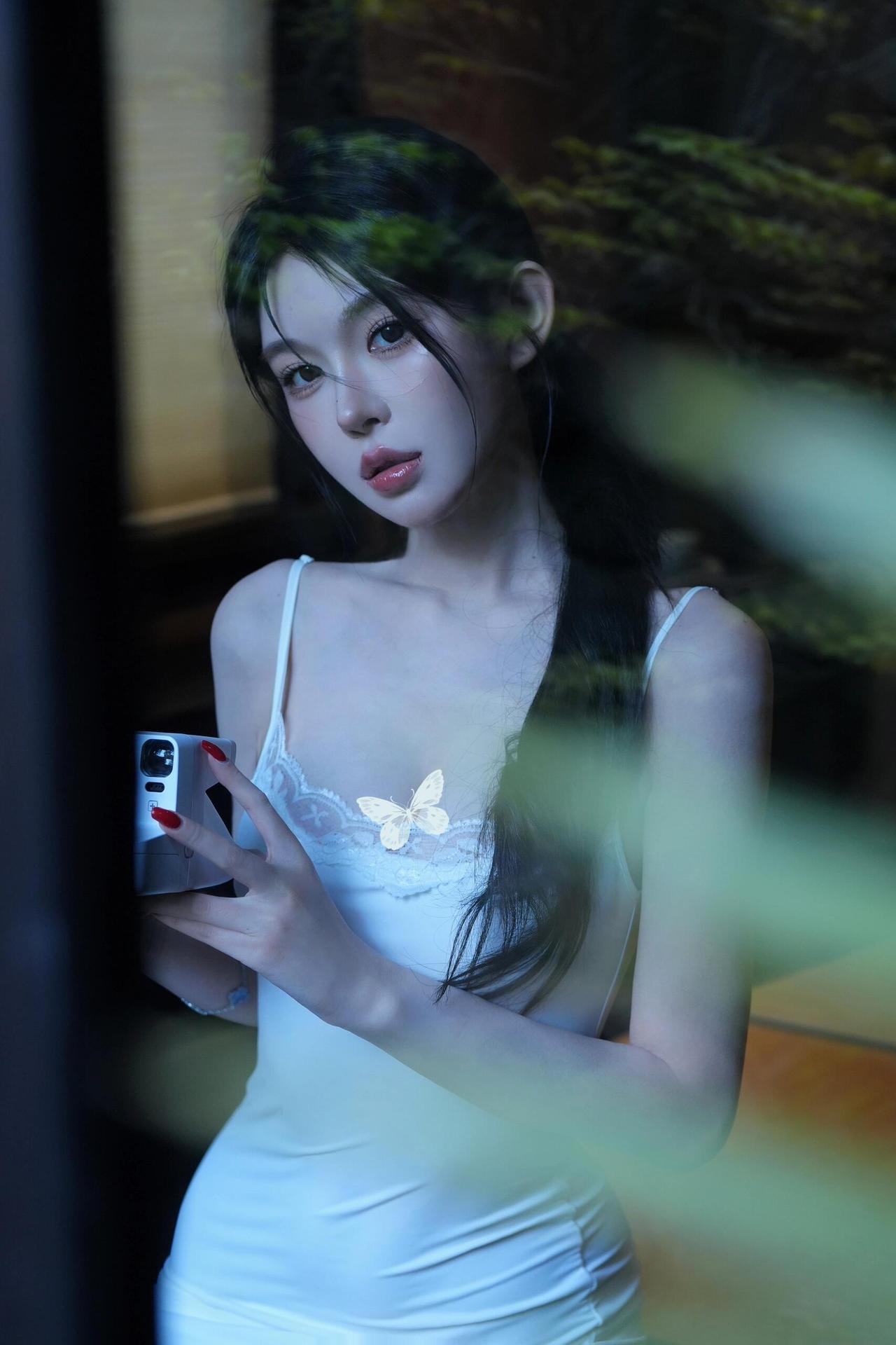梦幻森林中的少女,轻盈纱裙与自然融为一体