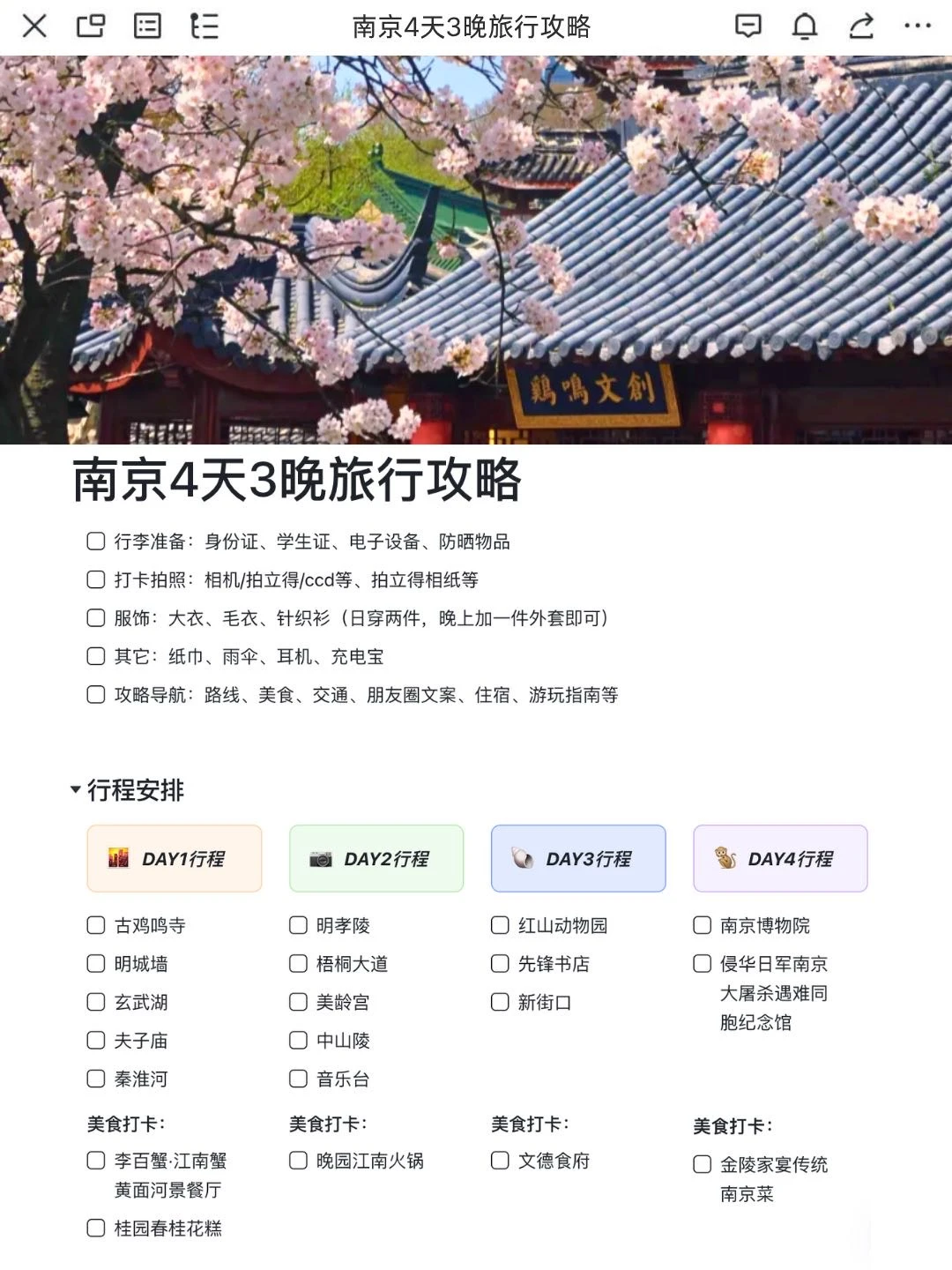 J人的南京旅游攻略一眼看懂,第一次去南京bi看! 第一次去南京看一篇攻略就够啦!热门景点、游玩指南、住宿、美食全都有涉及~清晰明了,不用再去找其他眼花撩乱的攻略了,南京小白可以跟着玩✅🌸🐒