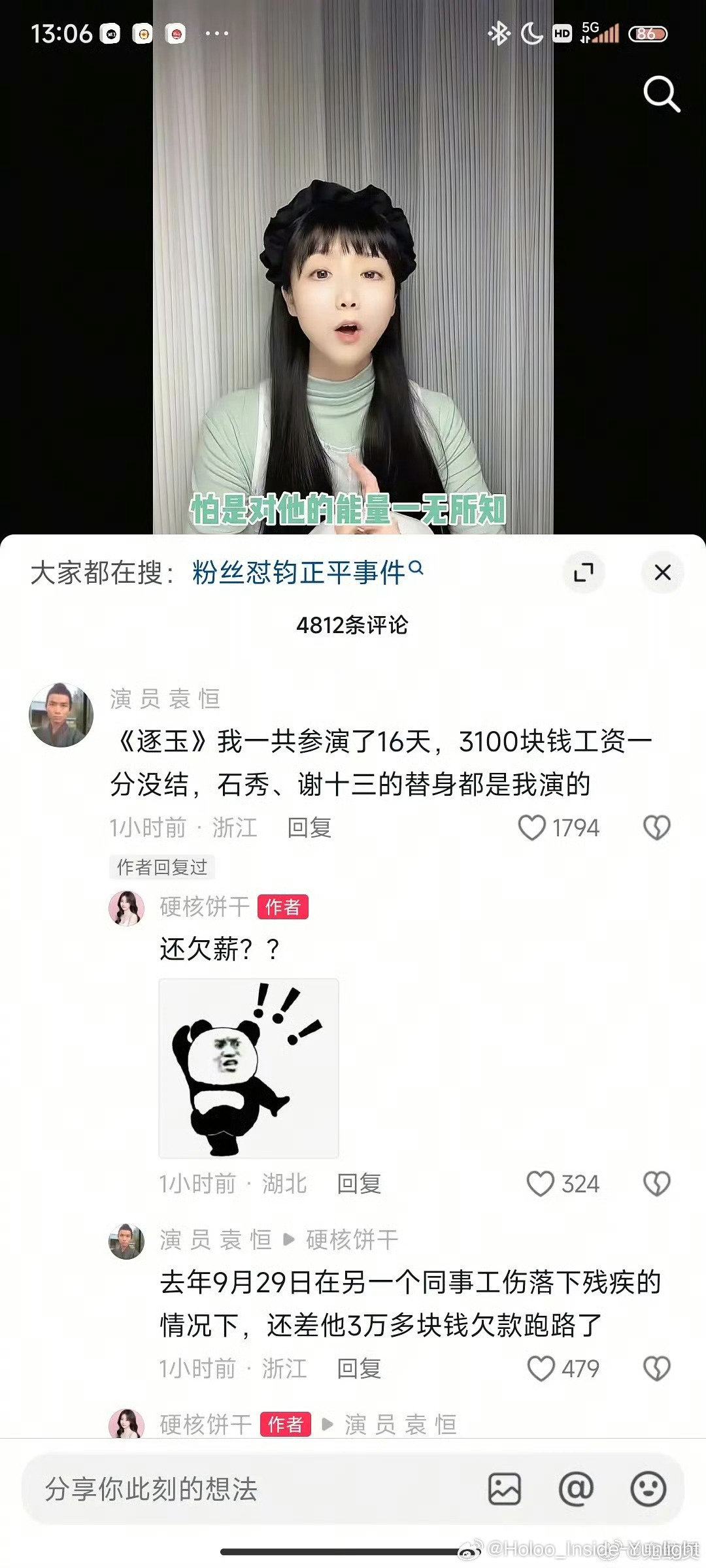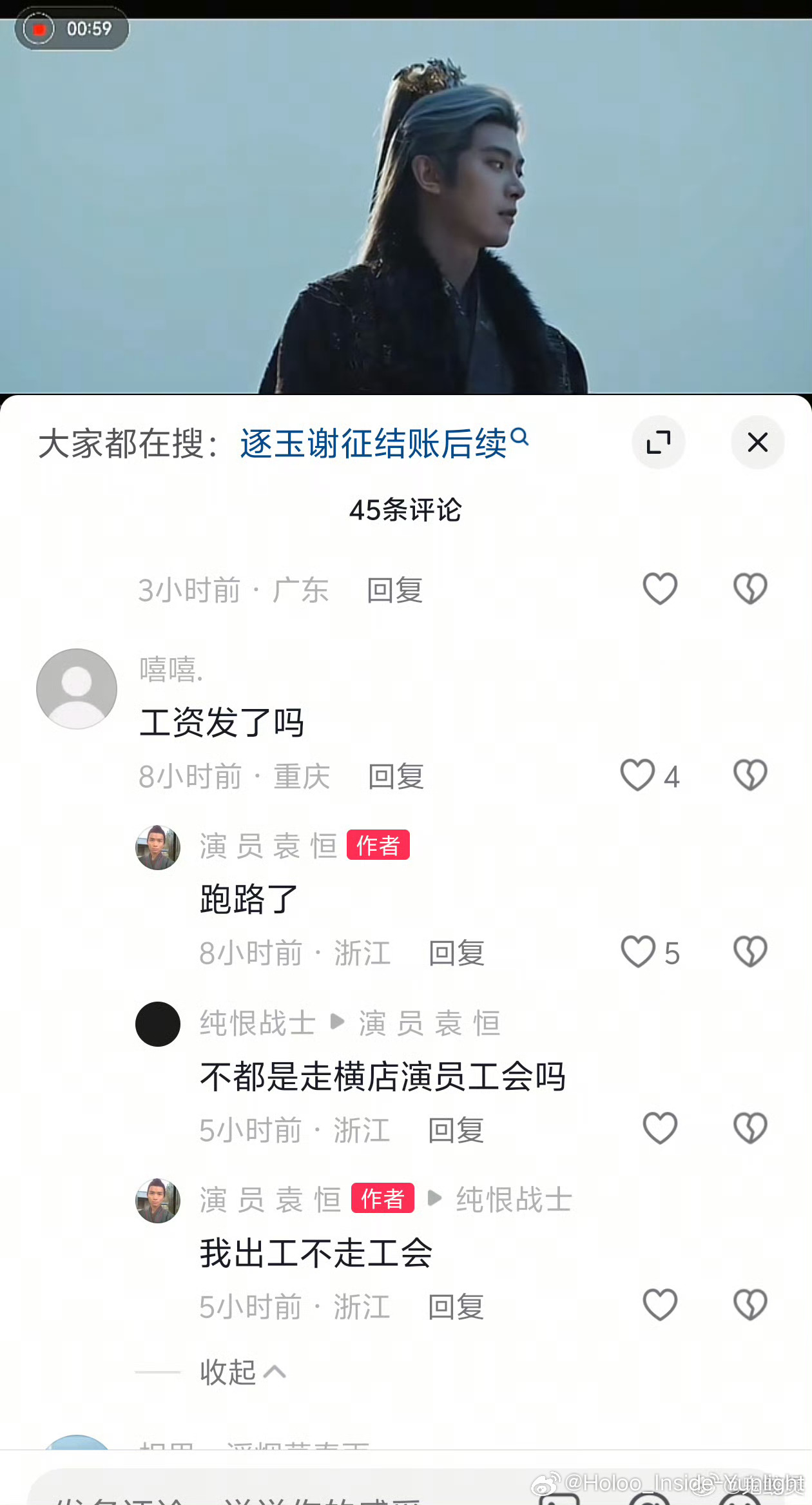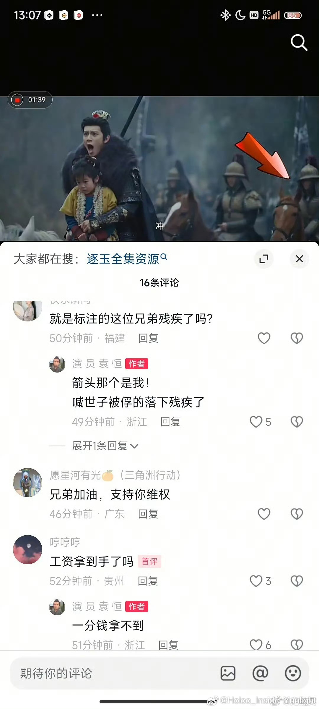 痘印上一演员袁恒称自己是《逐玉》里的石秀、谢十三的替身,一共参演16天,按约定是3100块的工资,但实际上一分没结。并且还爆料称,9月29日,同剧组同事在工伤落下残疾的情况下,逐玉剧组未结清3万欠款跑路。