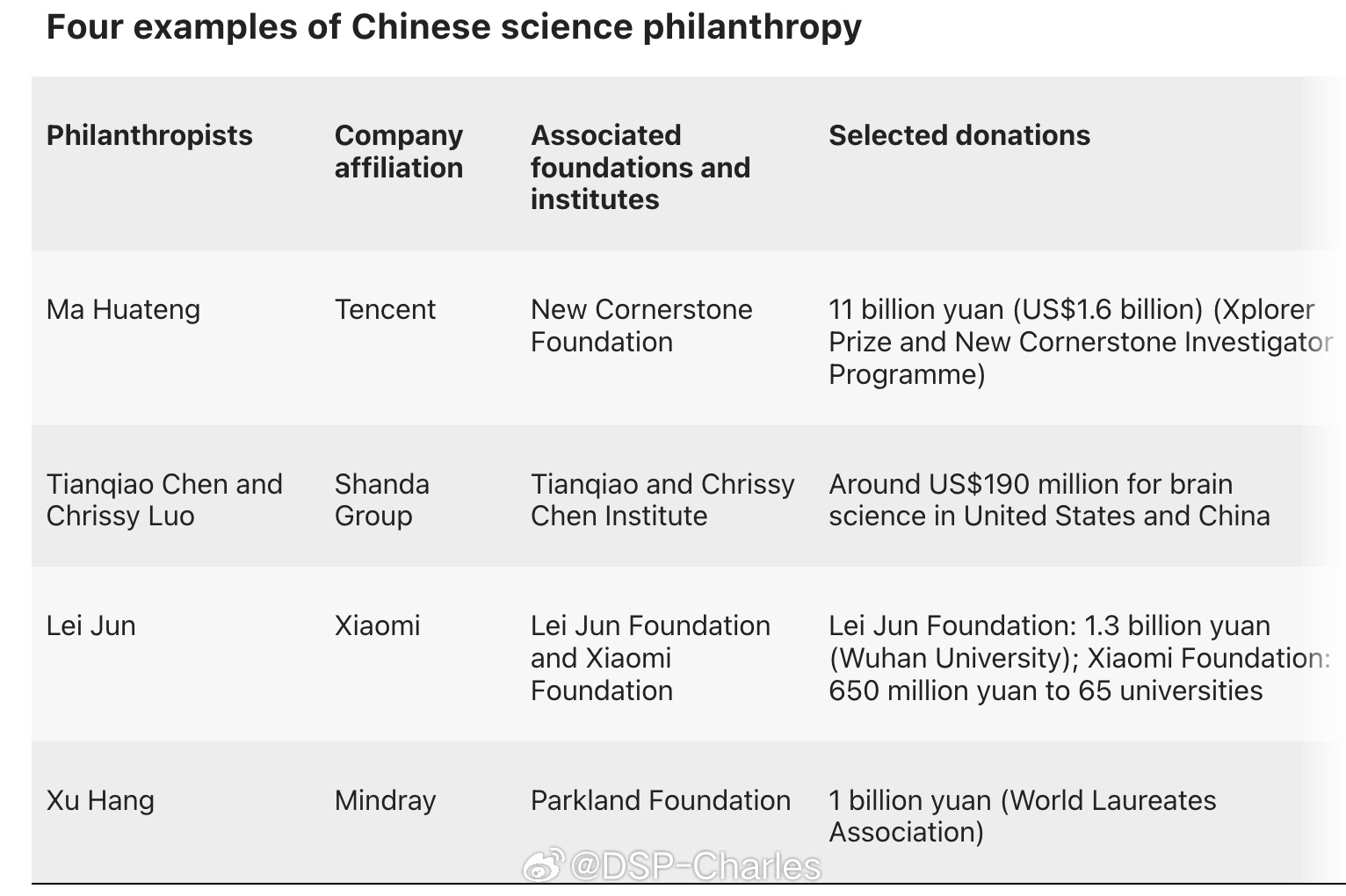 雷军是Nature点名的四位典型企业家之一。小米公益基金会累计捐赠超8亿,覆盖65所高校,资助了1082名青年教师和16220名学生。