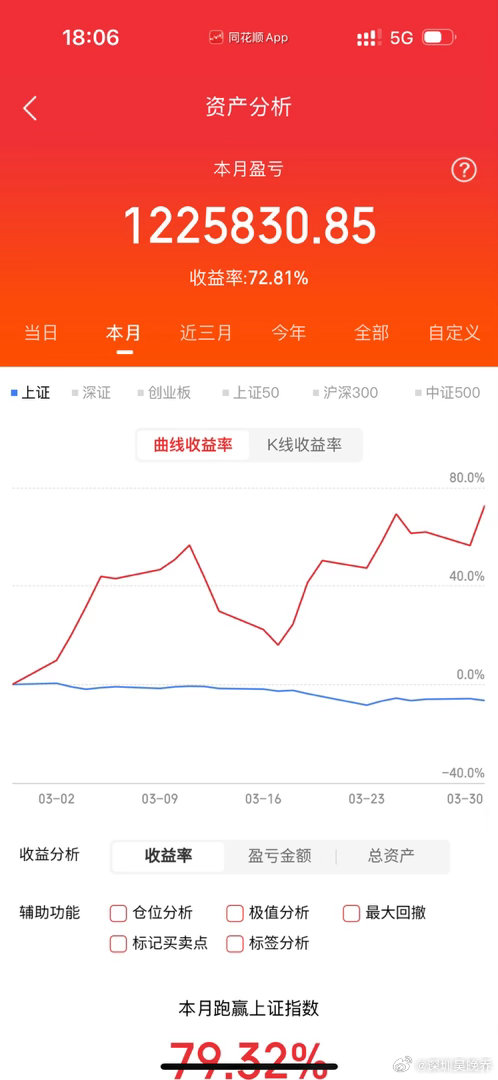三月收官之战,本月行情跌宕起伏,整体盈利72%。综合下来给自己打70分,很多地方做得不够好,该止损的时候犹豫没止损,卖飞的票更是一大堆,教训很深刻。