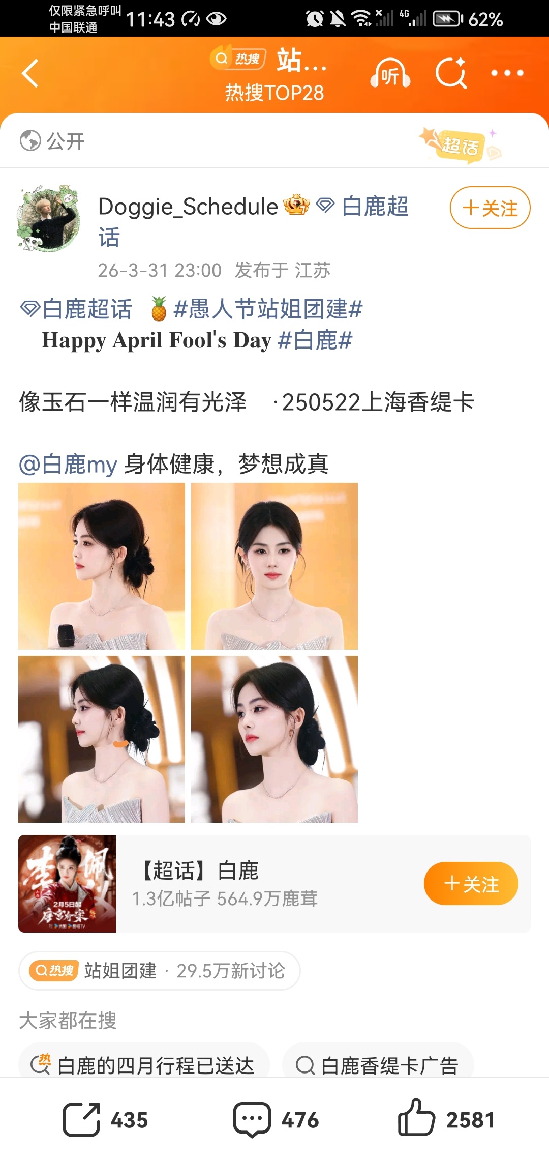 愚人节团建各家站姐发的白鹿神图!这是真神图!站姐团建