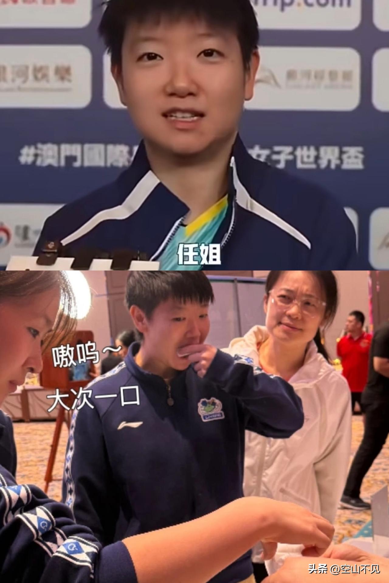 这个画面太搞笑 孙颖莎!这个小皮猴,嘴里吃着一块龙须酥,眼睛还瞄着下一块。 看队医姐姐,皱着眉带着笑,表情很微妙,有点像妈妈对着吃货小闺女贪吃时万般无奈的样子,太可爱了。 孩子偷吃零食被发现了。操心的姐姐不容易啊!如此自律的莎莎,也会被任姐管着,真好!孙颖莎