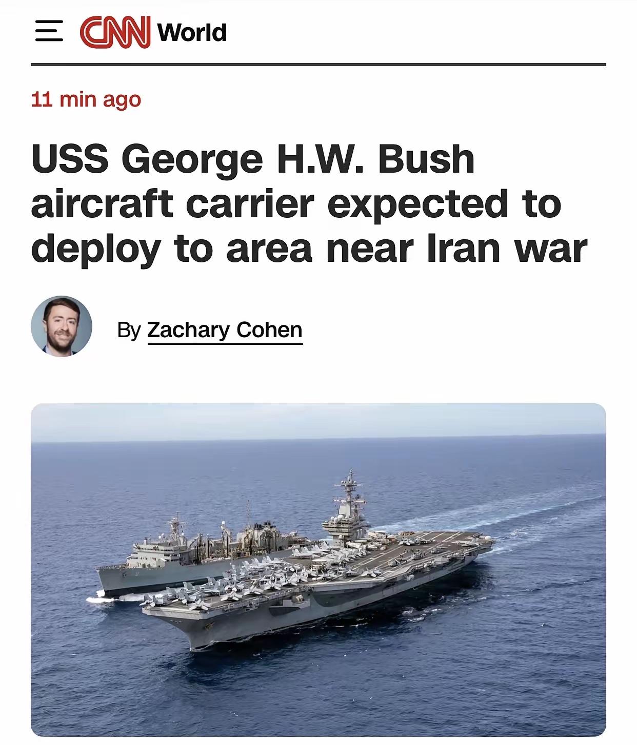 4月1号,美媒报道,美国海军“乔治·H·W·布什”号航母驶离诺福克海军基地。此前,“的黎波里”号两栖攻击舰已抵达中央司令部责任区,“布什”号航母打击群也朝着中东进发。美军或许会对伊朗发起更大规模的军事行动。美国一面与伊朗的谈判取得进展,一面却在增兵。“的黎波里”号搭载着约3500名水兵和海军陆战队员,还配备了运输机、战斗机等装备。