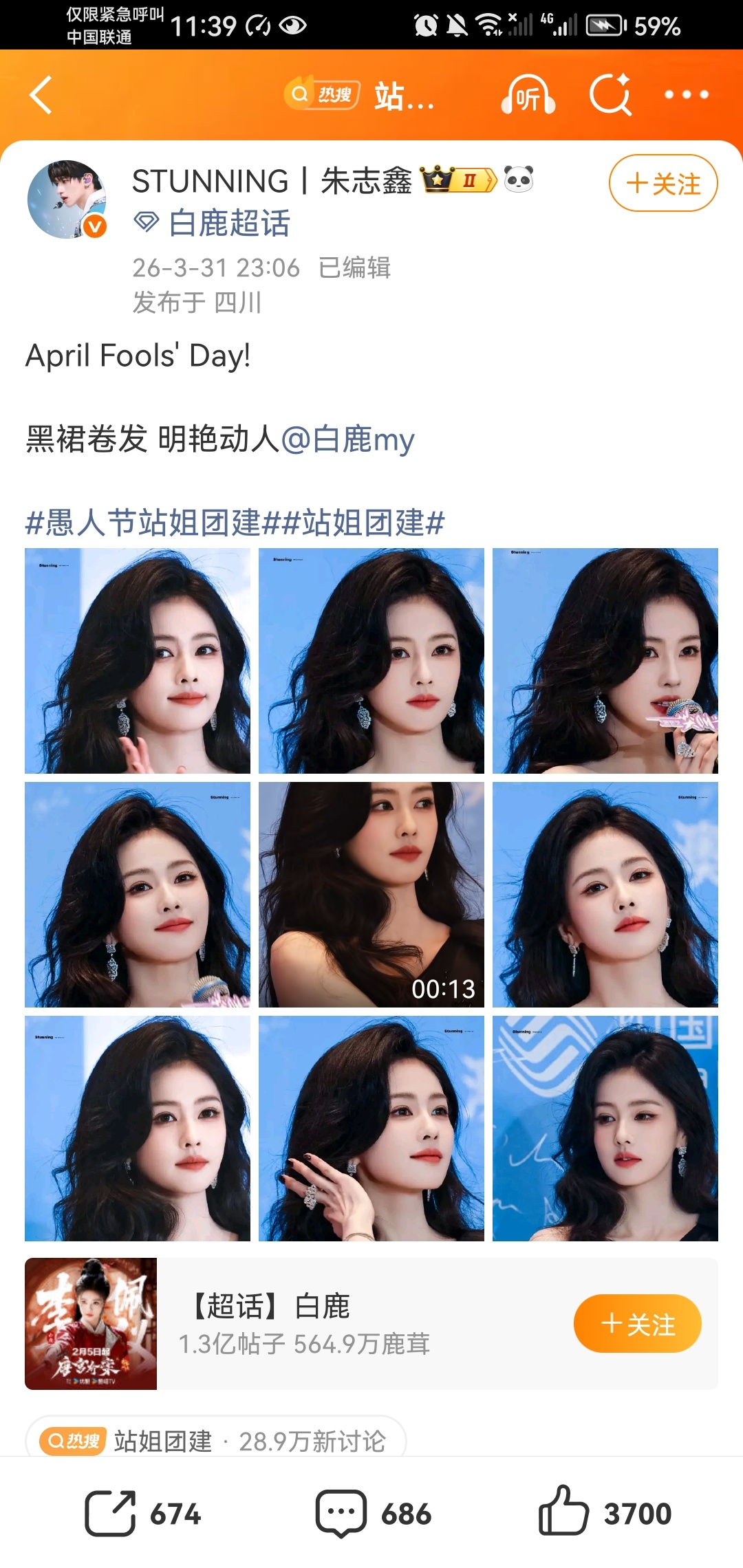 愚人节团建开始了!朱志鑫站姐发的白鹿好惊艳啊!愚人节站姐团建