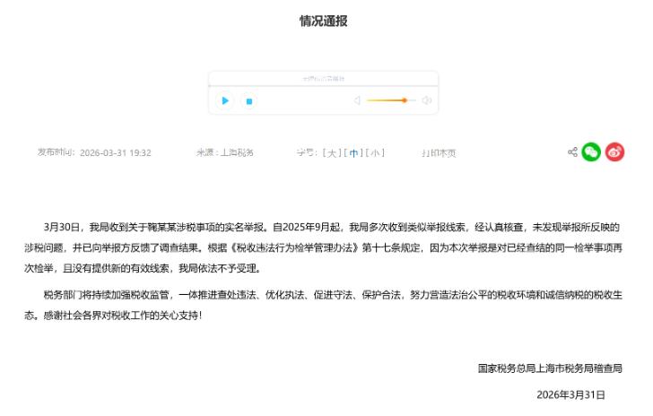 鞠婧祎是第一个被举报偷税后查完没问题的艺人? 在很多人看来,凡是被举报偷漏税的明星,税务部门是一查一个准,因为过去有非常多的明星网红偷漏税,而且金额还特别大。 演员范冰冰2018年被举报偷漏税,后来查出通过阴阳合同方式拆分片酬,偷逃税款达1.34亿元,少缴税款2.48亿元,最后被追缴税款、滞纳金、罚款8.84亿元。 范冰冰是被查出偷逃税金额最高的明星,明星演员中后来还有郑爽、吴亦凡、邓伦、袁冰妍等明星也被查出了偷逃税,他们的金额也比较高。 值得关注的是网红主播也是偷逃税的重点群体,这几年由于网络直播的兴起,很多主播都是赚得盆满钵满,所以被查出偷逃税的网红主播也非常多,其中偷逃税比较高的两个网红主播就是薇娅和雪梨,她们偷逃税分别为6.43亿元、6555.31亿元。 上述明星、网红偷逃税出事情,基本上都是因为有人举报,可见对这些高收入的明星网红来说,在税收问题上是一查一个准。 但这几天有一个女艺人却是成为了第一个被举报偷税后查完没有问题的明星,这个人就是鞠婧祎,原先丝芭传媒旗下偶像团体的女艺人。 最近有人出来公开实名举报鞠婧祎涉嫌严重的偷逃税问题,向税务部门举报,甚至还将自己实名举报信和税务部门回执发在网络上,一时间让鞠婧祎陷入巨大的网络舆论风暴。 据鞠婧祎工作室透露,由于原先公司与鞠婧祎之间一直打官司结下了梁子,于是就有人长期对鞠婧祎进行各种举报,企图用一些负面舆论断送掉鞠婧祎的艺人职业前途。 然而这次举报人的企图没有得逞,税务部门很快就核查清楚了,因为过去查过很多次了,第二天就给出了回复,而且还公开发布的情况通报说明,经查实,鞠婧祎不存在举报者所称的偷逃税问题。 我觉得女艺人鞠婧祎这次被举报反而变成了好事,举报者让鞠婧祎获得了很好的名声,估计举报者都要哭晕在厕所,陷害不成,反让鞠婧祎知名度大涨!