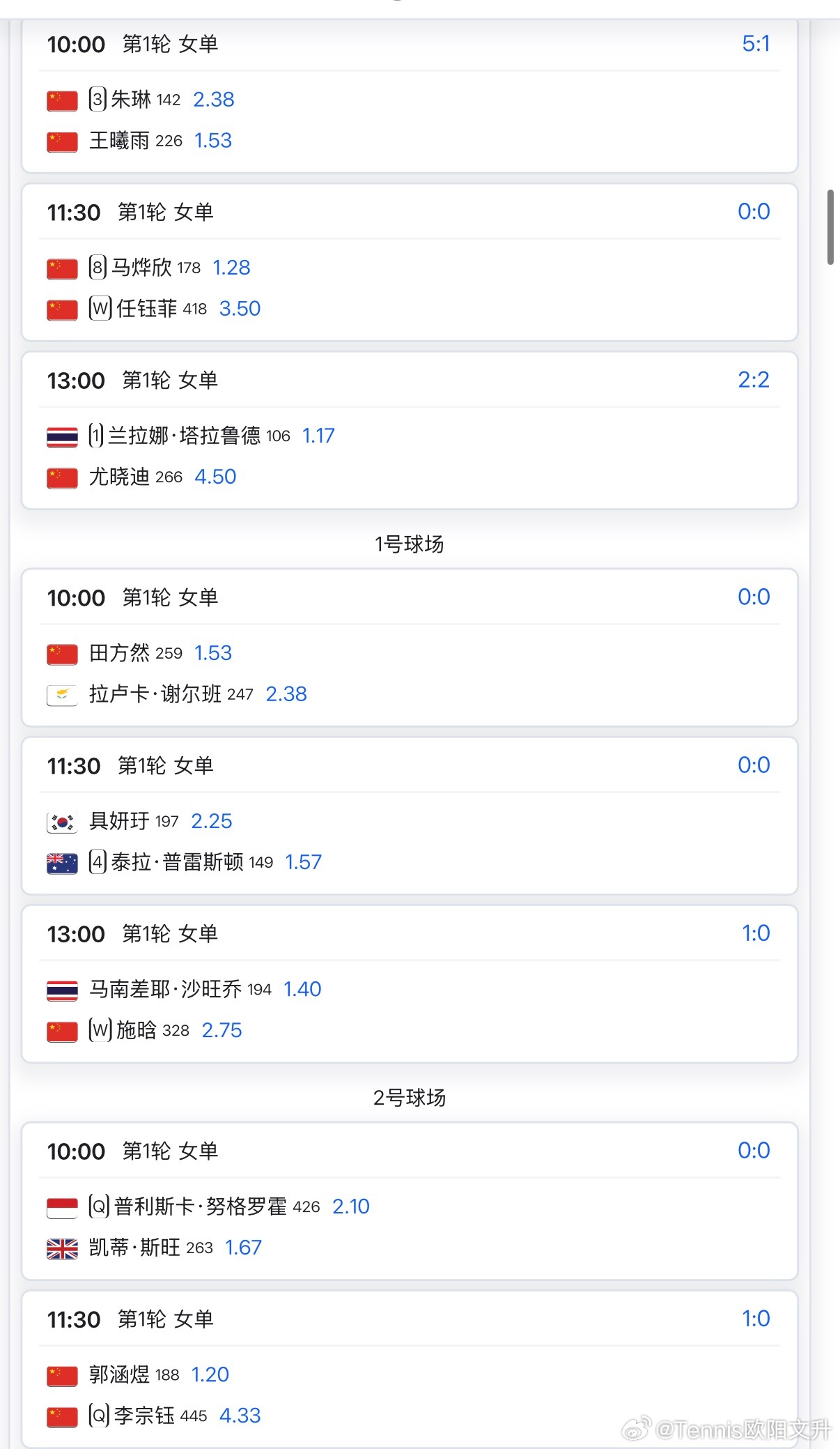 一觉醒来关注下六安的比赛吧🇨🇳朱琳vs🇨🇳王曦雨首轮就相遇也是醉了