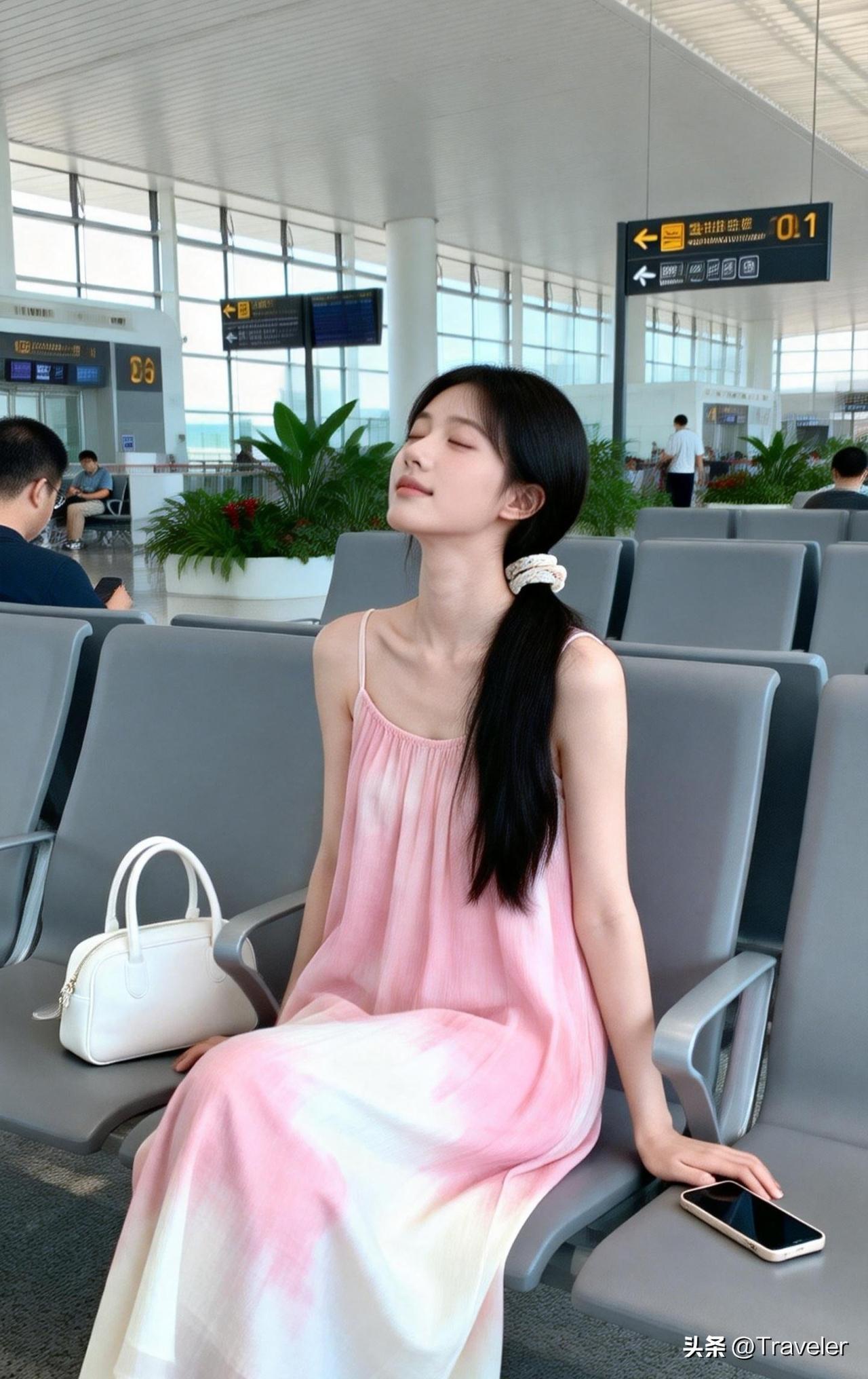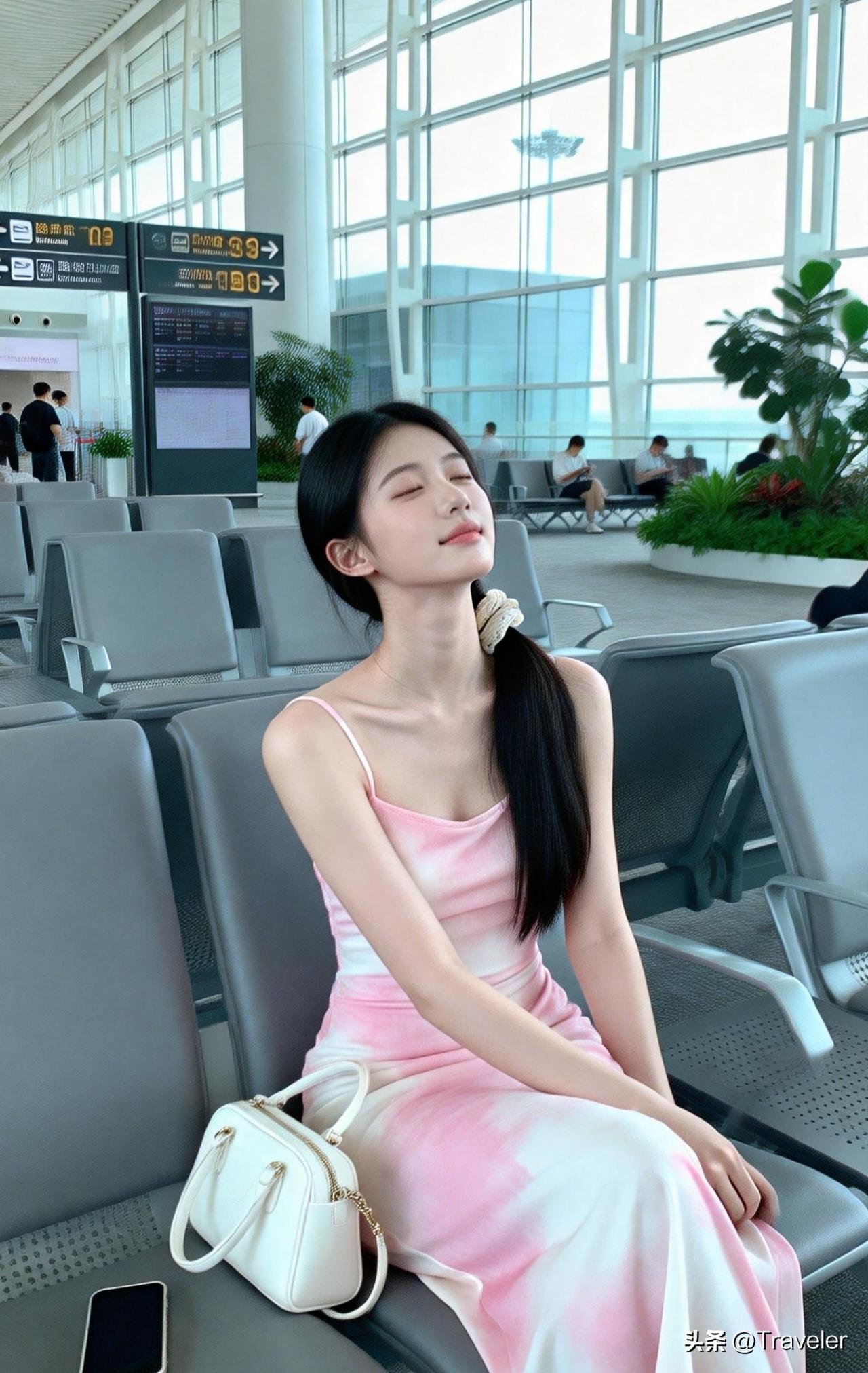 候机人静坐,心随云游远。