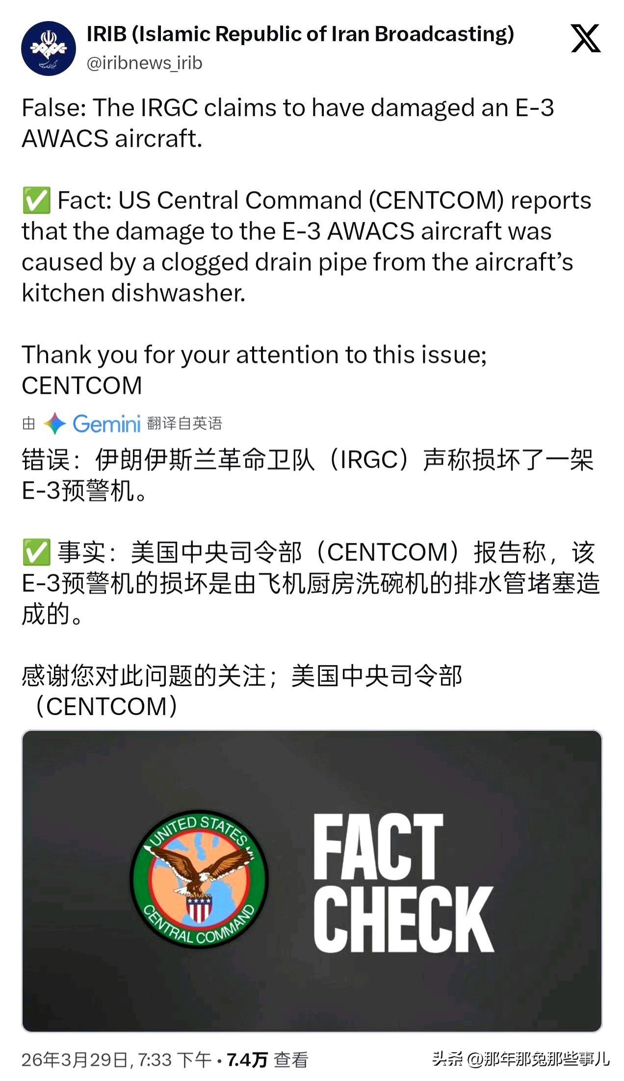 美团最近送的又快又多.. 消息人士称美国损失的不是一架e3预警机,是两架。因为另一架是新洗碗机把下水道堵了导致飞机炸膛.. 单论架次的话,美以军这次损失的有人机和海湾比只是个零头。但伊朗摧毁了大量高价值、战略性目标。 萨德、铺路爪、E-3G,这些东西美军保有量不超过20,几乎和航母、B-2一样稀有。这确实很疼了。 要是真的可就神了😂乌了么4年的销毁量被美团这么快赶上了了...