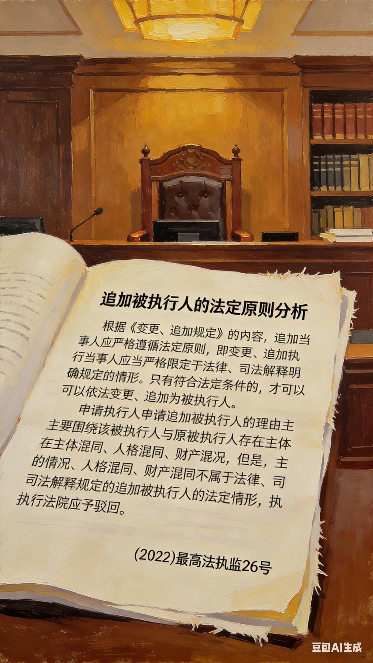 以主体混同、人格混同、财产混同为由申请追加被执行人,于法无据 核心观点: 根据《变更、追加规定》的内容,追加当事人应严格遵循法定原则,即变更、追加执行当事人应当严格限定于法律、司法解释明确规定的情形。只有符合法定条件的,才可以依法变更、追加为被执行人。2申请执行人申请追加被执行人的理由主要围绕该被执行人与原被执行人存在主体混同、人格混同、财产混同的情形,但是,主体混同、人格混同、财产混同不属于法律、司法解释规定的追加被执行人的法定情形,执行法院应予驳回。 (2022)最高法执监26号