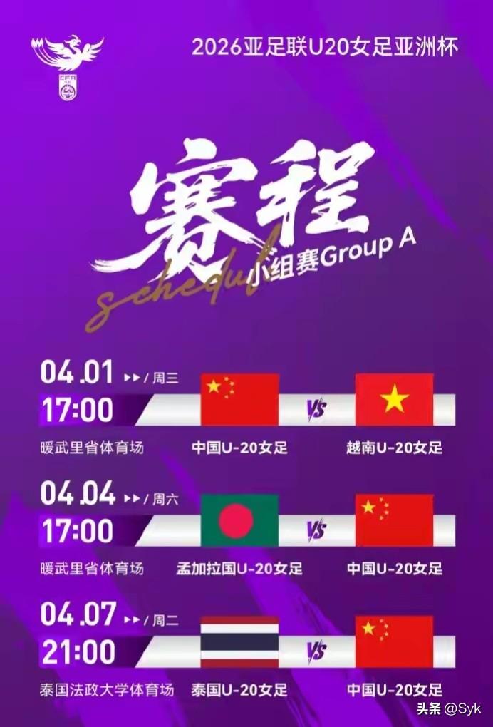 男足落幕,女足登台!U20女足今日冲亚洲杯,剑指世青赛冠军! 男足的赛事刚刚落幕,中国足球的舞台,就交给了这群年轻的铿锵玫瑰。 2026亚足联U20女足亚洲杯今日正式开战!下午17:00,由科林·贝尔挂帅的中国U20女足,将在暖武里省体育场迎来小组赛首战,对阵越南U20女足,正式开启冲击世青赛的征程。 本届赛事共有12支球队参赛,分为3个小组。赛制规则清晰:三个小组的前两名+2个成绩最好的小组第三晋级八强,八强战的胜者(即最终四强),将直接拿到2026波兰U20女足世界杯的参赛资格。 中国U20女足被分在A组,除首战越南外,还将先后迎战孟加拉国与东道主泰国,每一场都关乎出线命运。 从门将到前锋,这支队伍集结了全国最具潜力的青年球员,带着青春锐气与拼搏精神出征。男足的遗憾,由女足来续写荣光!期待姑娘们敢打敢拼、火力全开,一路过关斩将,不仅要拿到世青赛门票,更要向着冠军全力冲刺,让铿锵玫瑰在亚洲之巅绽放!