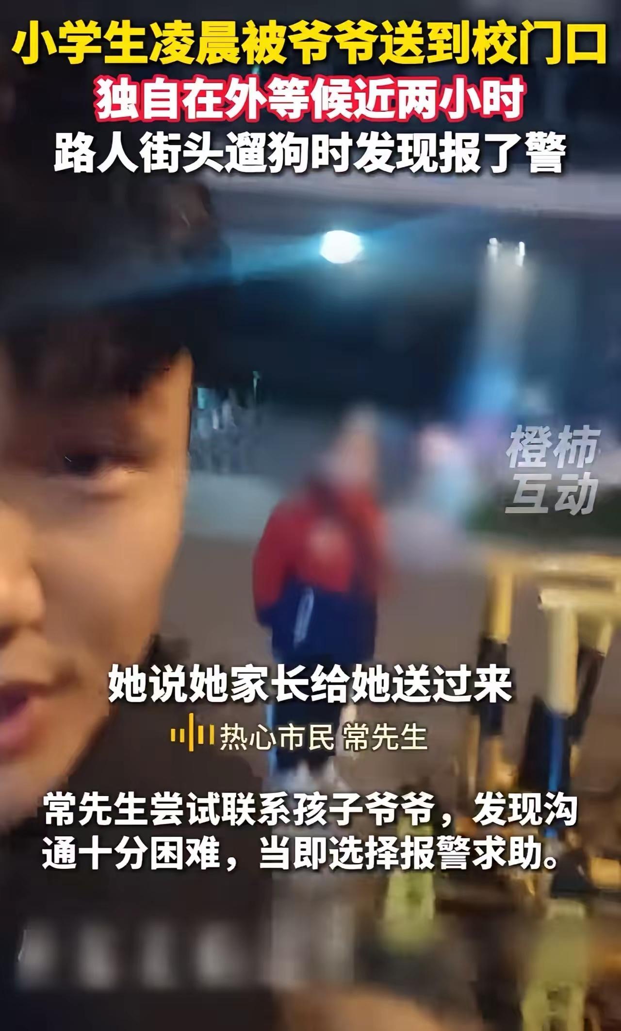 凌晨 1 点校门口,7 岁女童被爷爷“遗弃”?苦等 2 小时遇遛狗大叔,真相让全网泪崩:这哪是爱,这是要命! 太离谱了!简直让人后背发凉! 你能想象吗?在河南洛阳的深夜,寒风刺骨,凌晨 1 点 40 分,大多数孩子还在温暖的被窝里做着香甜的梦,而一名年仅七八岁的小学生,却被亲爷爷送到了空无一人的校门口。老人转身离去,留下小女孩独自一人在漆黑的夜里,整整蹲守了两个多小时! 如果不是命运的安排,如果不是那个偶然路过的好心人,这个懂事得让人心疼的孩子,今晚将会面临怎样的危险? 惊魂一刻:凌晨三点的“神秘”身影! 故事发生在洛阳的一个普通夜晚。市民常先生因为失眠,凌晨 3 点多牵着狗出门溜达。夜深沉,路灯昏黄,街道上静得可怕。当他走到一所小学门口时,借着微弱的光线,他惊讶地发现铁栅栏外蹲着一个小小的身影。 “这么晚了,怎么会有小孩?”常先生心里咯噔一下,第一反应是不是谁家孩子走丢了,或者是遇到了什么坏人。他壮着胆子走近一看,是个背着书包、手里紧紧攥着文具袋的小女孩。孩子身边没有任何大人陪同,就这样孤零零地蹲在冰冷的地上。 常先生急忙上前询问:“小朋友,这么晚了,你怎么一个人在这里?爸爸妈妈呢?” 小女孩抬起头,眼神里没有恐惧,也没有哭闹,反而平静得让人心酸。她轻声说道:“是爷爷送我来的。爷爷让我在这儿等着学校开门,我已经等了两个多小时了……" 那一刻,常先生的血液仿佛都凝固了。凌晨 1 点 40 分送到,现在凌晨 3 点多,这意味着孩子在寒风中已经瑟瑟发抖地等了近两个小时!更可怕的是,孩子似乎觉得这一切都是理所当然的,爷爷让等,她就乖乖地等,不吵不闹,甚至没有想过要反抗或求助。 迷雾重重:糊涂的爷爷与无奈的亲情 看着孩子冻得通红的小脸,常先生既愤怒又担忧。他试图联系孩子的爷爷,电话打通了,但沟通却异常艰难。老人的声音含糊不清,逻辑混乱,既说不清楚为什么要把孙女送得这么早,也说不清自己现在身处何地,甚至连家在哪里都表述不明。 常先生心中警铃大作:这哪里是故意狠心,这分明是老人患上了阿尔兹海默症(老年痴呆)!老人或许记忆出现了严重的偏差,把时间搞混了,或者潜意识里觉得“早点去学校才安全”,于是凭着残存的记忆,机械地执行着“送孙子上学”的任务,却完全丧失了判断时间和环境安全的能力。 面对这样一个糊涂的老人和一个处于险境的孩子,常先生没有丝毫犹豫,立即选择了报警。警察赶到后,迅速介入处理,将孩子妥善安置,并联系上了孩子的父母。 全网破防:这不是“懂事”,这是“致命隐患”? 常先生事后将这段经历发到了网上,字里行间充满了后怕与痛心:“真是让人捏了一把汗!万一遇到坏人怎么办?万一孩子乱跑出了车祸怎么办?父母们真的要注意了!” 这条视频瞬间引爆了网络,无数网友看得鼻子发酸。大家心疼那个在寒夜里乖乖等待的孩子,她的“懂事”让人揪心;大家也更心疼那位糊涂的老人,即便神志不清,脑海里刻着的依然是“送孙辈上学”的责任。 然而,感动之余,更多的是深深的警示。这孩子没出事,不是因为她安全,纯粹是因为运气好! 她遇上了良心未泯的常先生,遇上了巡逻的警察,而没有遇上潜伏在黑暗中的恶魔。如果常先生那天晚上没有失眠?如果他没往那个方向走?如果孩子因为害怕乱跑进了小巷?后果不堪设想! 这起事件撕开了一个残酷的社会伤疤:隔代抚养中的认知危机。 如今,大量年轻父母为了生计外出打工,将孩子留给家中的老人照顾。老人们倾尽所有去爱孙辈,但这种爱,往往伴随着巨大的风险。随着年龄增长,许多老人患有高血压、糖尿病,甚至是认知障碍。他们的记忆力衰退、时间感错乱、判断力下降,这些在平日里可能只是“老糊涂”的小毛病,但在涉及孩子安全的大事上,就是随时可能爆发的“定时炸弹”。 这件事给所有为人父母者敲响了警钟: 不要以为老人能把孩子养大,就能毫无风险地继续带孙子。必须定期关注老人的认知能力,一旦发现老人有记不住事、分不清时间地点、行为逻辑混乱等迹象,必须立刻调整抚养方案。绝不能让患有认知障碍的老人独自承担接送孩子、照顾孩子外出的重任。 我们常夸孩子“乖”、“懂事”、“不让大人操心”,但在这个复杂的社会里,过度的顺从有时会让孩子失去自我保护的本能。要教会孩子识别危险,告诉他们在异常情况下的拒绝权和求助权,而不是盲目服从长辈的错误指令。 真正的爱,不是让孩子提前六七个小时到校门口吹风,而是确保他在合适的时间、安全的环境下抵达学校。那种自我感动的“提前量”,在安全隐患面前,一文不值。 洛阳的寒夜虽然寒冷,但常先生的善举温暖了人心。然而,我们不能总指望运气和好心人来为疏忽买单。愿每一位老人都能被细心关照。小学生死在放学路上,学校有责任吗