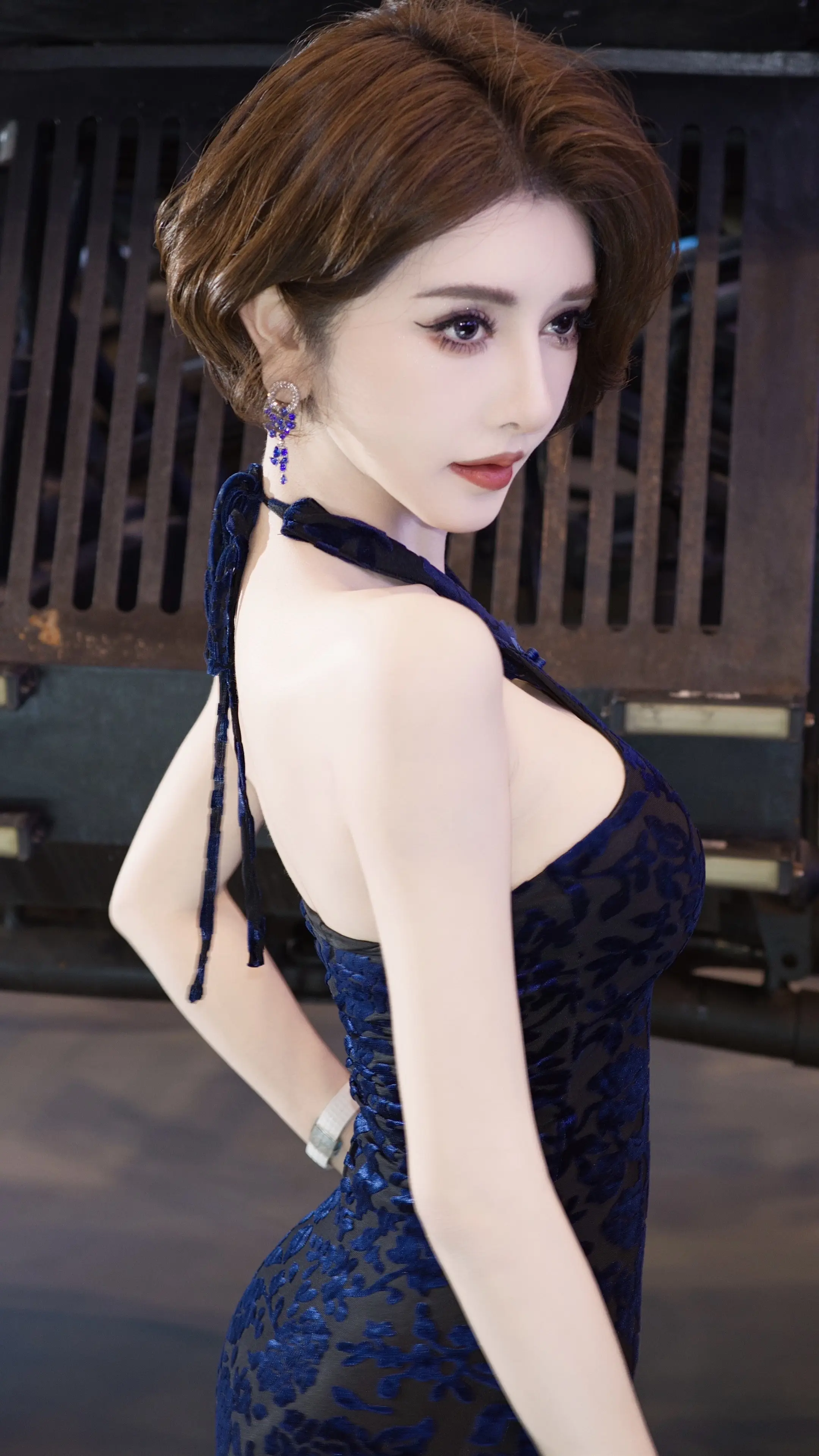 她的背影。