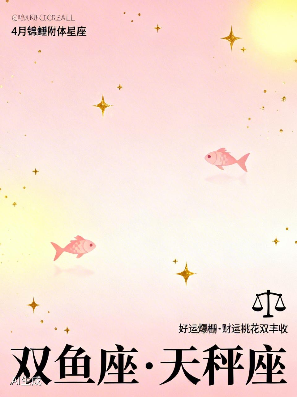 4月锦鲤附体星座!这三个星座好运爆棚,财运桃花双丰收 4月好运已就位!这三大星座直接锦鲤附体,财运、事业、桃花全面开挂,谁接谁走运! 双鱼座:4月简直是双鱼的幸运月 。财运爆发,正财稳、偏财旺,奖金、兼职、意外进账不断 。直觉超准,选项目、避坑全中,创意工作灵感爆棚 。单身遇优质正缘,有伴感情升温,被爱包围。小事都顺利,出门不堵、排队快,妥妥人间锦鲤 。 天秤座:本月社交运拉满。贵人运超强,合作顺利、人脉变现,谈单加薪成功率高。单身者朋友变恋人几率高,4月中旬遇心动缘分。有伴者矛盾化解,适合见家长、定未来。财运稳中有升,合作分成、副业收入增多。 摩羯座:厚积薄发的一月。事业迎来高光,长期付出被看见,升职加薪、项目丰收。理财见效,投资、不动产带来稳定收益。单身遇靠谱踏实对象,有伴感情稳固、共规划未来。努力全有回报,开启事业财运双丰收模式。 4月这三个星座,被好运狠狠偏爱 。愿大家接住锦鲤气,所愿皆所得,所行皆坦途。 4月运势 锦鲤附体