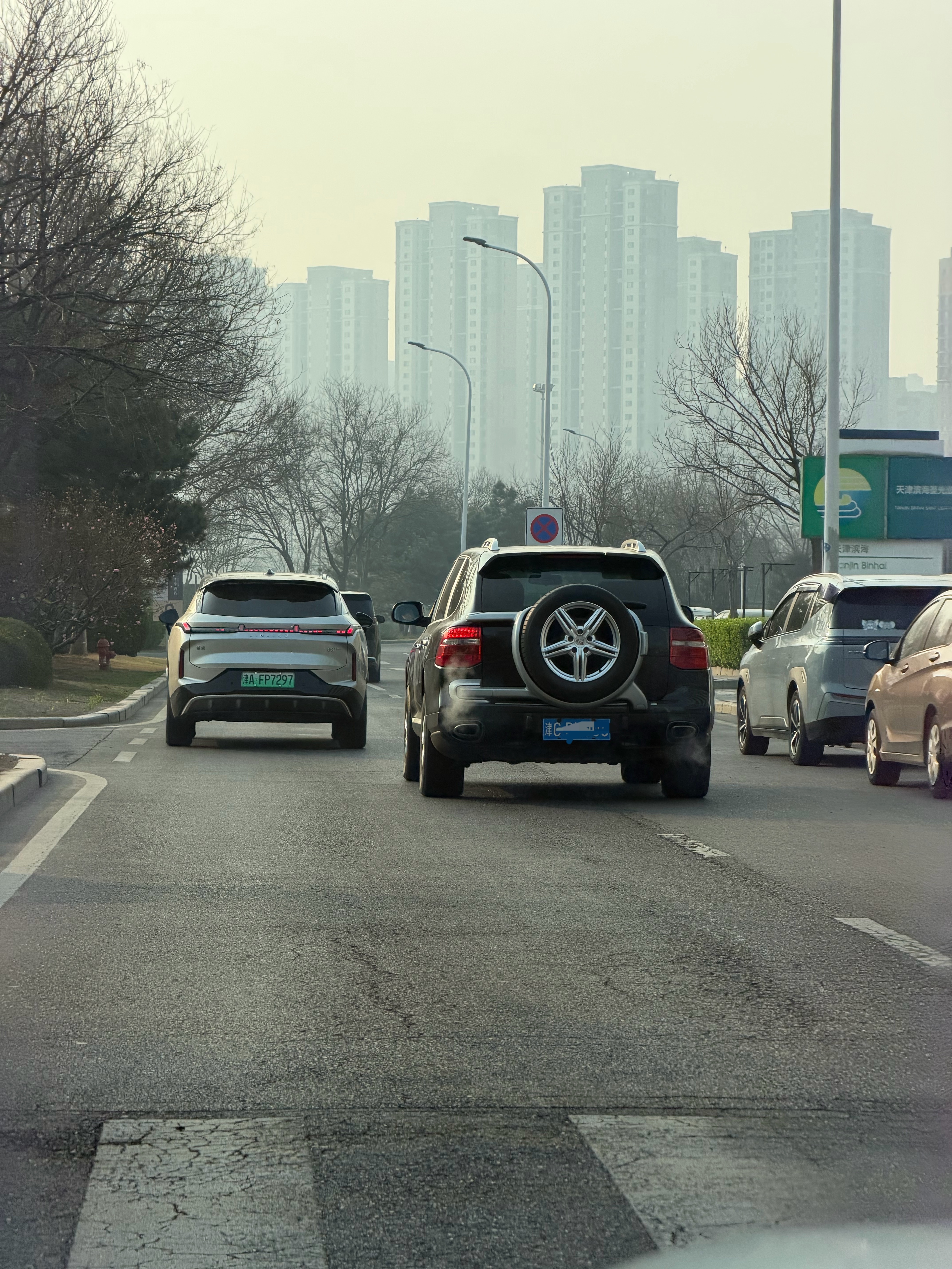带后挂备胎的老卡宴是真帅啊,真精神。现在的车别说后挂备胎了,连备胎都没有。基本都给一个充气泵。上次我在高速上扎胎,扎的钉子比较大,漏气的速度,比打气的速度快多了。我就赶紧就近下了高速,胎压1.0的时候,轮胎碾的都已经发热了,所以当时有人觉得胎压高会爆胎,其实恰恰相反,胎压过低才会容易爆胎。 天津